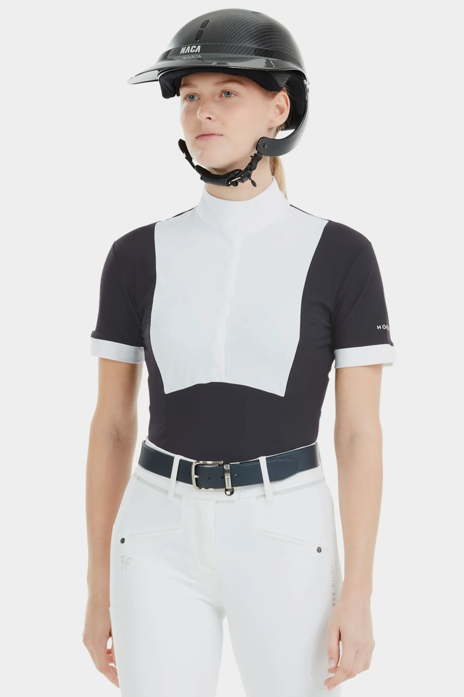 Ein elegantes Shirt, das für den Sport gemacht wurde und das du zu all deinen Wettbewerben mitnehmen möchtest! Wie das Monica Shirt mit langen Ärmeln erfüllt auch das Monica Shirt mit kurzen Ärmeln alle Wettbewerbsanforderungen. Mit ergonomischen Ausschnitten passt sich das Shirt perfekt den Bewegungen des Körpers an. Hergestellt aus 4-Wege-Stretchmaterial und mit unserer UV-Block-Technologie bietet das Shirt Komfort und Schutz. Die hoch atmungsaktive, mikroperforierte Zone im Rücken leitet Wärme während intensiver Anstrengung ab. Der Ausschnitt wurde speziell so designt, dass er den Wettbewerbsanforderungen entspricht. Die Höhe ist perfekt für die Jagd und das Reiten. Und weil eine der Hauptwerte von Horse Pilot die Umweltverantwortung ist, ist der Stoff mit OEKO-TEX® Standard 100 zertifiziert.
