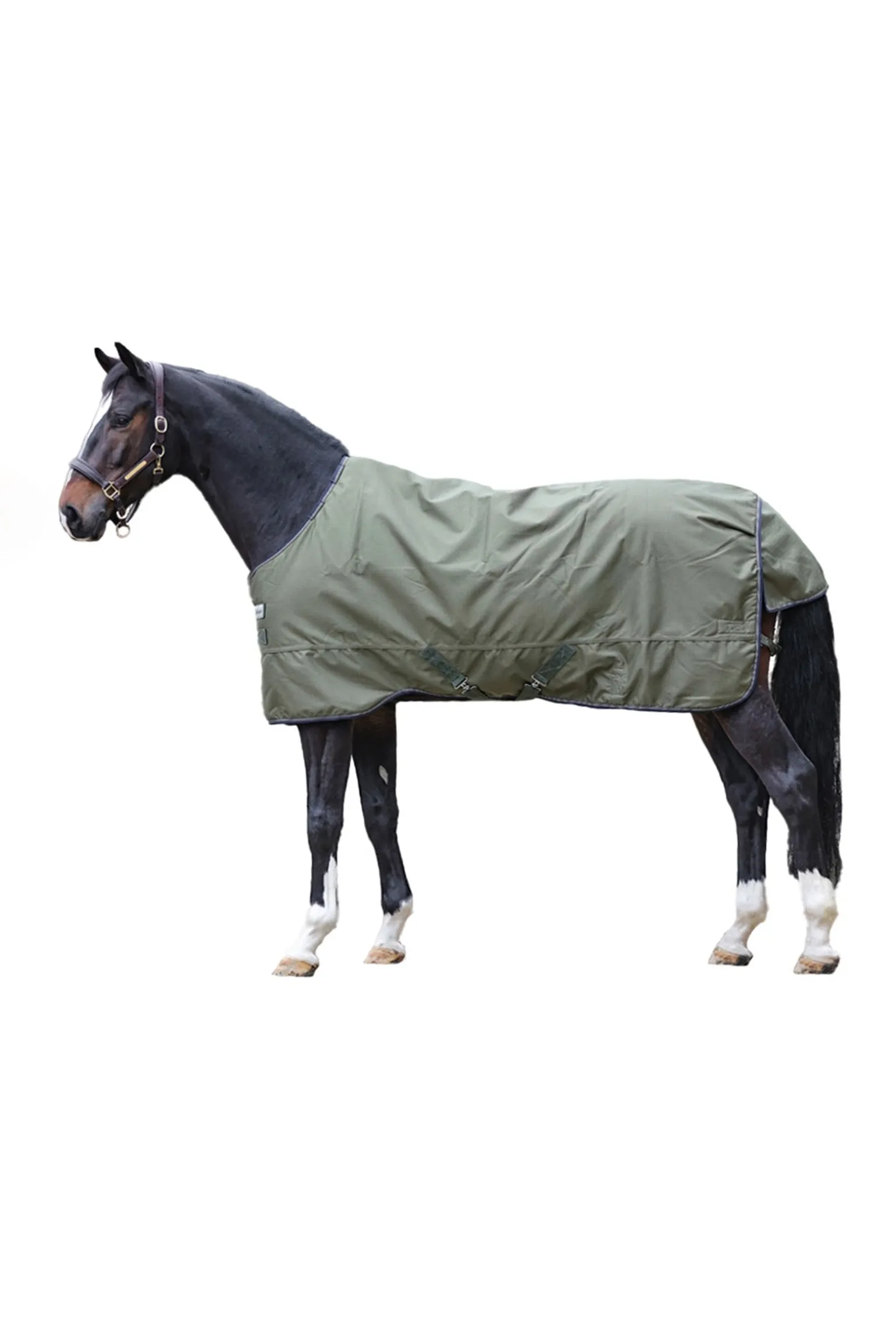 Die Outdoordecke ist wasserdicht (3000 mm Wassersäule, Atmungsaktivität 4000 g/qm inh. 24 h) und begeistert durch ihre hervorragende Passform. Die Decke ist reiß- und scheuerfest durch 1200 DEN Nylon-Gewebe. Tiefer Schweifriemen-Schweiflatz, doppelter Drehhakenbrustverschluss mit zusätzlichem Klett, elastische Einsätze bei der Kreuzbegurtung, Ösen zur Befestigung eines separat erhältlichen Halsteil. Ohne Gehfalte. 100g Füllung.