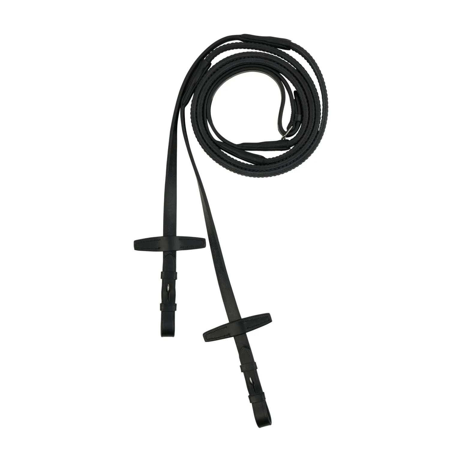 Die Horze Muswell Zügel sind aus Leder gefertigt und mit Gummi verstärkt, und dadurch einfach zu halten. Befestige sie an einer Trense und du kannst loslegen!