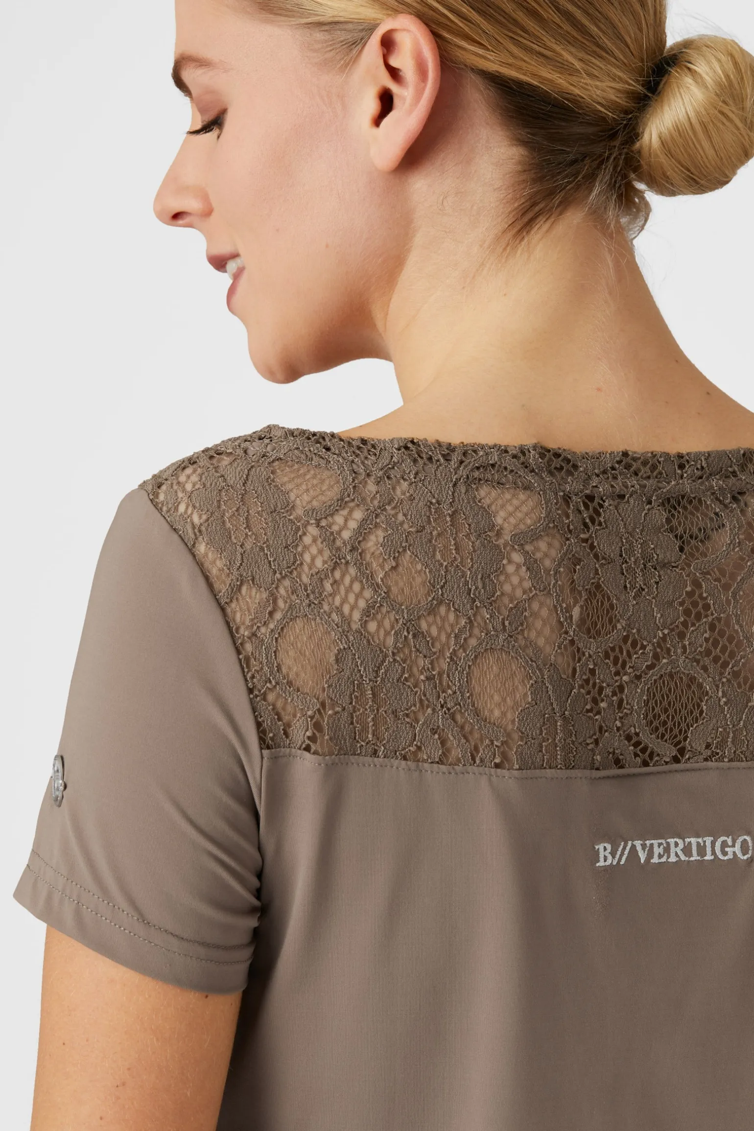 Unser B Vertigo Natalia Shirt ist leicht und atmungsaktiv, perfekt für das Training. Weiche Spitze um den Kragen macht es fast zu schön, um es nicht auch in deiner Freizeit zu tragen. Die dezente B Vertigo Stickerei sorgt für ein elegantes Detail. Kombiniere es mit unserer Natalia Reithose (#36720) für einen kompletten Look.