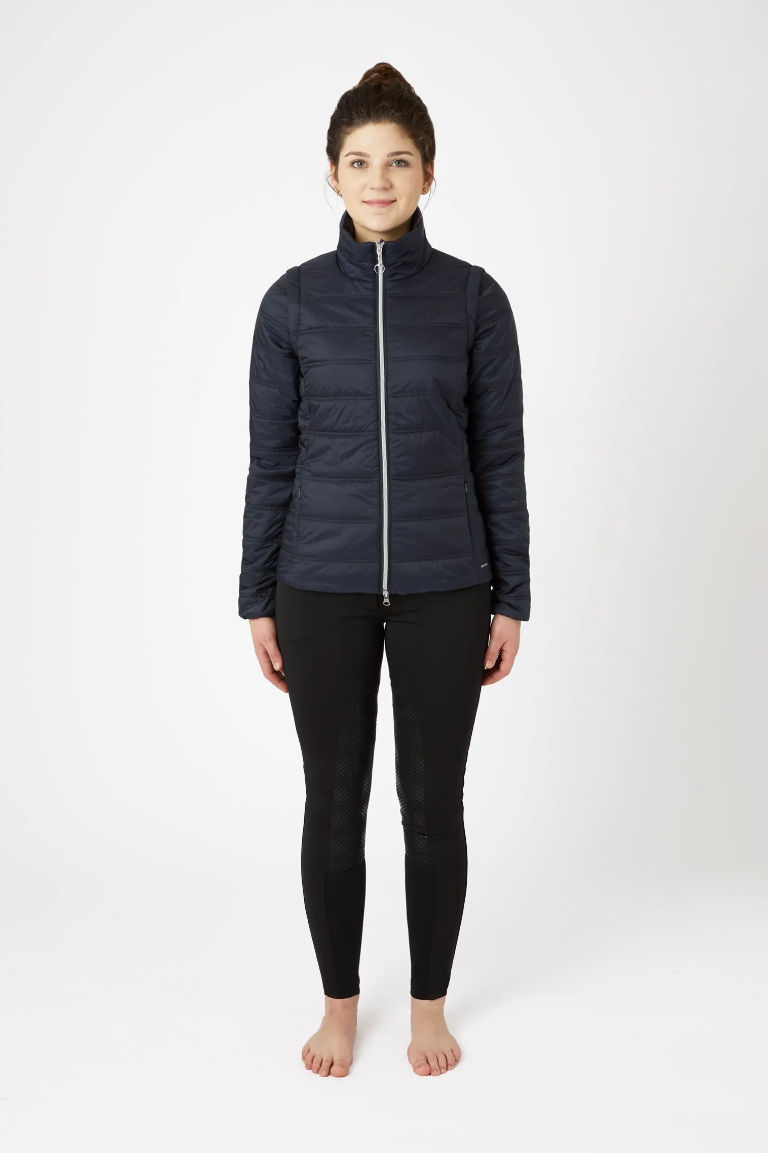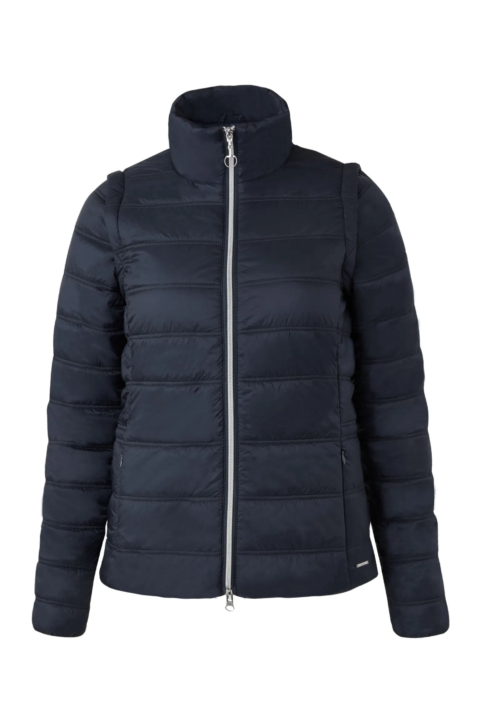 Die leichte Horze Natalie Jacke mit abnehmbaren Ärmeln kann einfach zu einer Weste umfunktioniert werden. Die Ärmel werden mit Reißverschlüssen befestigt. Die Jacke besteht aus atmungsaktivem, wasserabweisendem Material, das sie super praktisch macht. Passe sie mit dem verstellbaren Band an der Taille genau an deine Bedürfnisse an. Reißverschlusstaschen bieten genügend Platz für dein Handy und deinen Schlüssel.