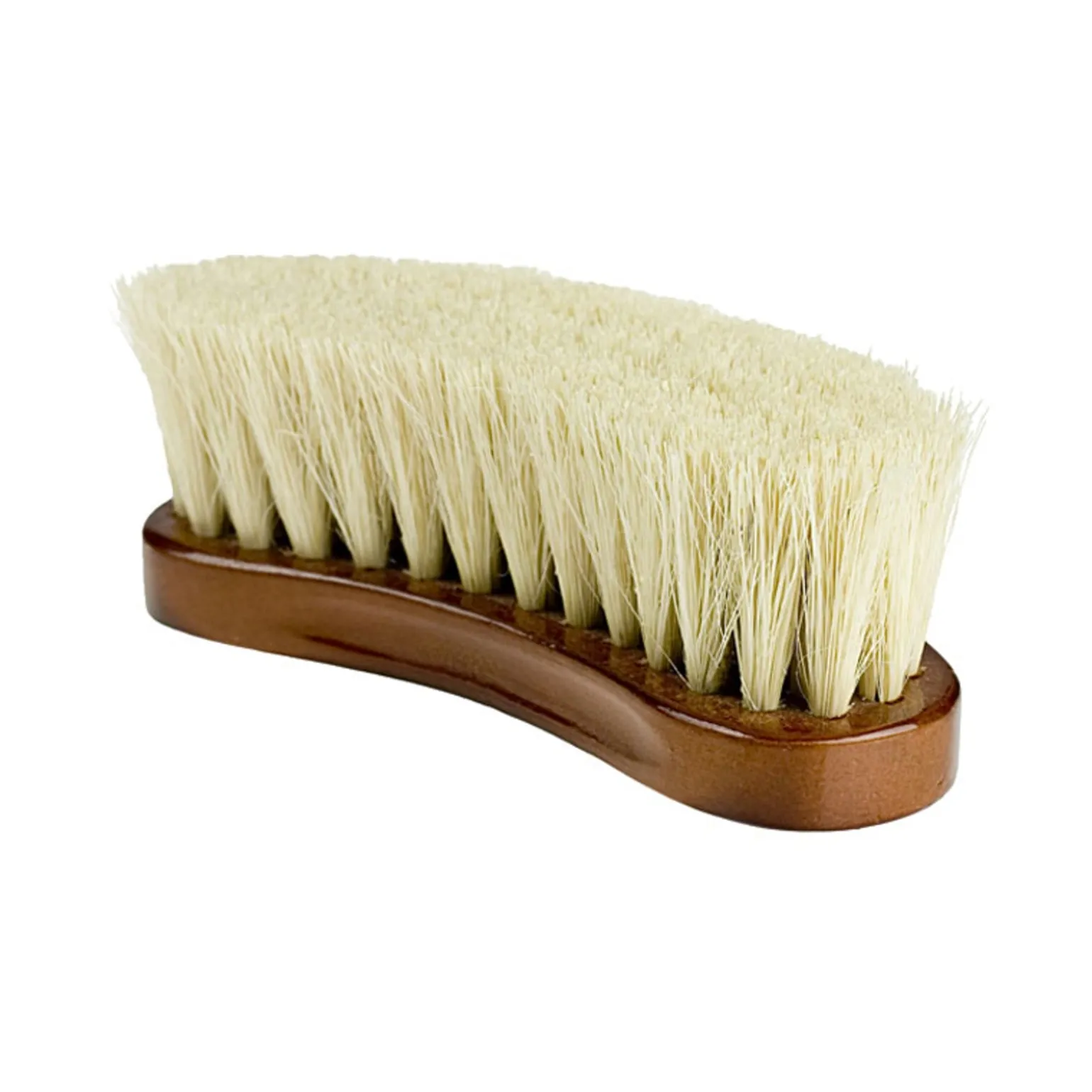 Staubbürste mit natürlichen, langen Tampico-Faserborsten und elegant lackiertem Holzrücken. Durch ihre gebogene Form liegt sie sehr angenehm in der Hand.