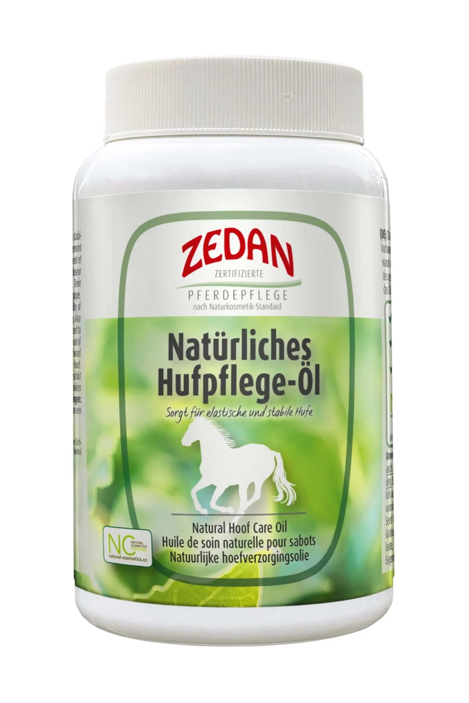 Das Natürliche Hufpflege-Öl von Zedan ist eine Komposition von 7 hochwertigen, natürlichen Ölen und wertvollem Lanolin. Lorbeerblätteröl regt die Hufhornbildung an und fördert stabile und elastische Hufe. Bio Hanfsaat-Öl* enthält Alpha-Linolensäure sowie Linolsäure und unterstützt die Zellerneuerung. Lanolin (Wollwachs) spendet Feuchtigkeit und langanhaltenden, natürlichen Glanz. Es pflegt die Hufwand und den Kronrand nachhaltig und sorgt so für Elastizität und Stabilität des gesamten Hufapparates. Durch seine außergewöhnliche Konsistenz tropft das Öl nicht so leicht und lässt sich mit dem praktischen Dosierstift ganz einfach auftragen. Auch für Strahl und Sohle geeignet. Wirksame Pflegerezepturen mit ökologischem Mehrwert aus Verantwortung für Tier, Mensch und unsere Umwelt.