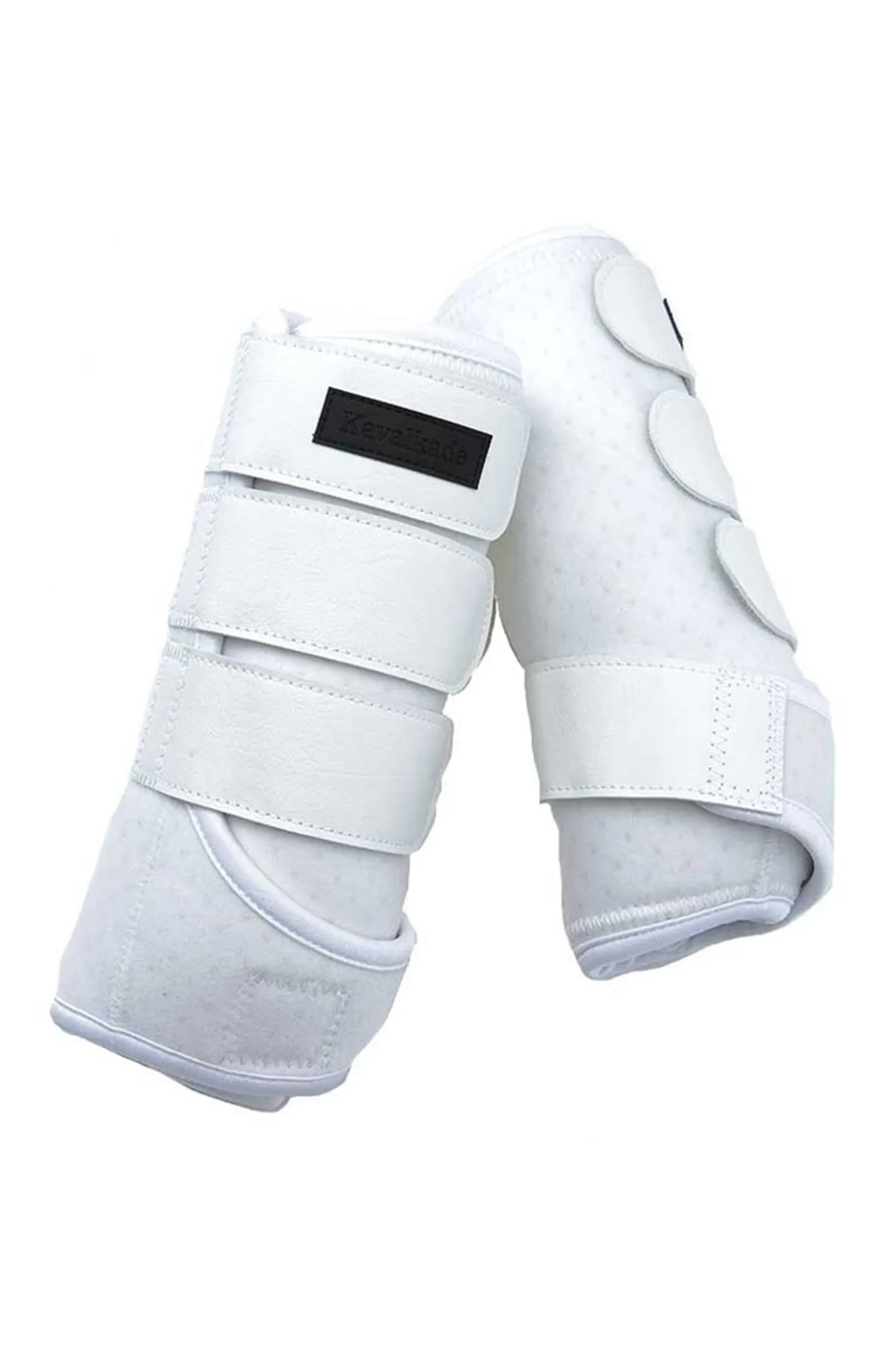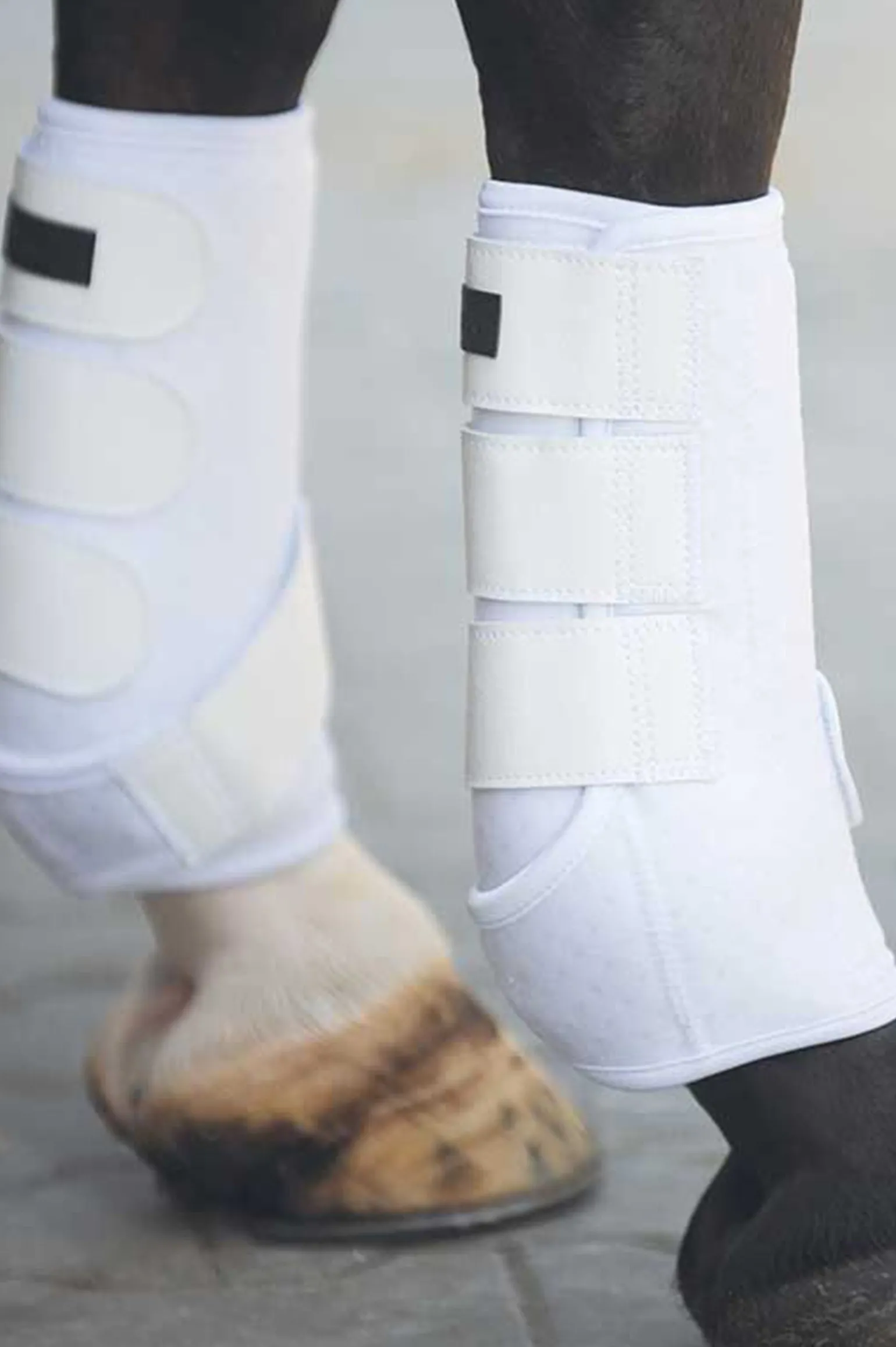 Die weichen Gamaschen aus Neopren sind innendrin sehr weich gepolstert und schützen das Pferd vor jeglichen Stößen an Gelenken, Röhrbeinen und Sehnen. Sie passen sich durch das weiche Material ideal der Kontur des Pferdebeines an und umschließen komplett das Fesselkopfgelenk. Sie rutschen nicht im geringsten und sind zudem Schweiß aufsaugend.