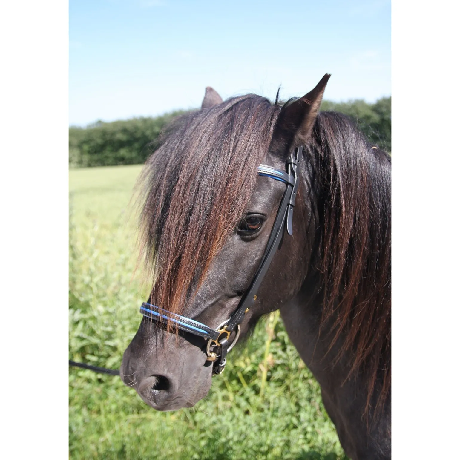 Das New Style Reithalfter ist Teil einer Farbkollektion in weicher Qualität mit Messingbeschlägen.