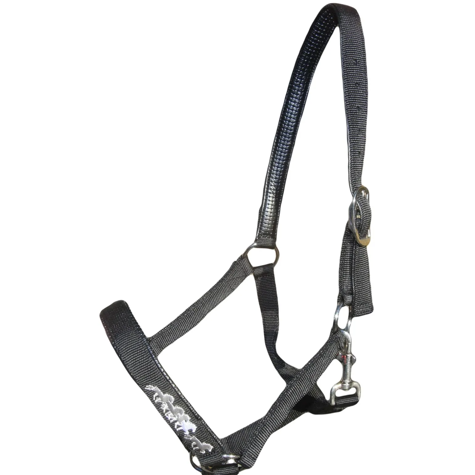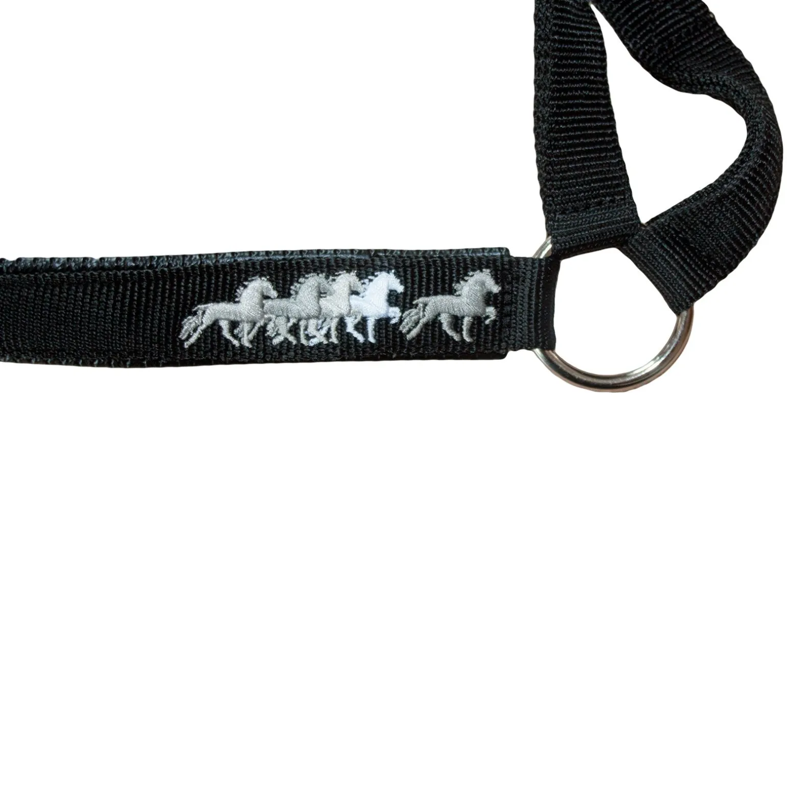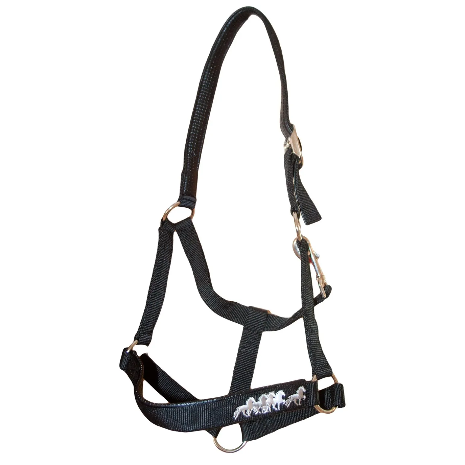 Nylonhalfter mit weicher Polsterung und einem gestickten Pferdemotiv eines Isländers.