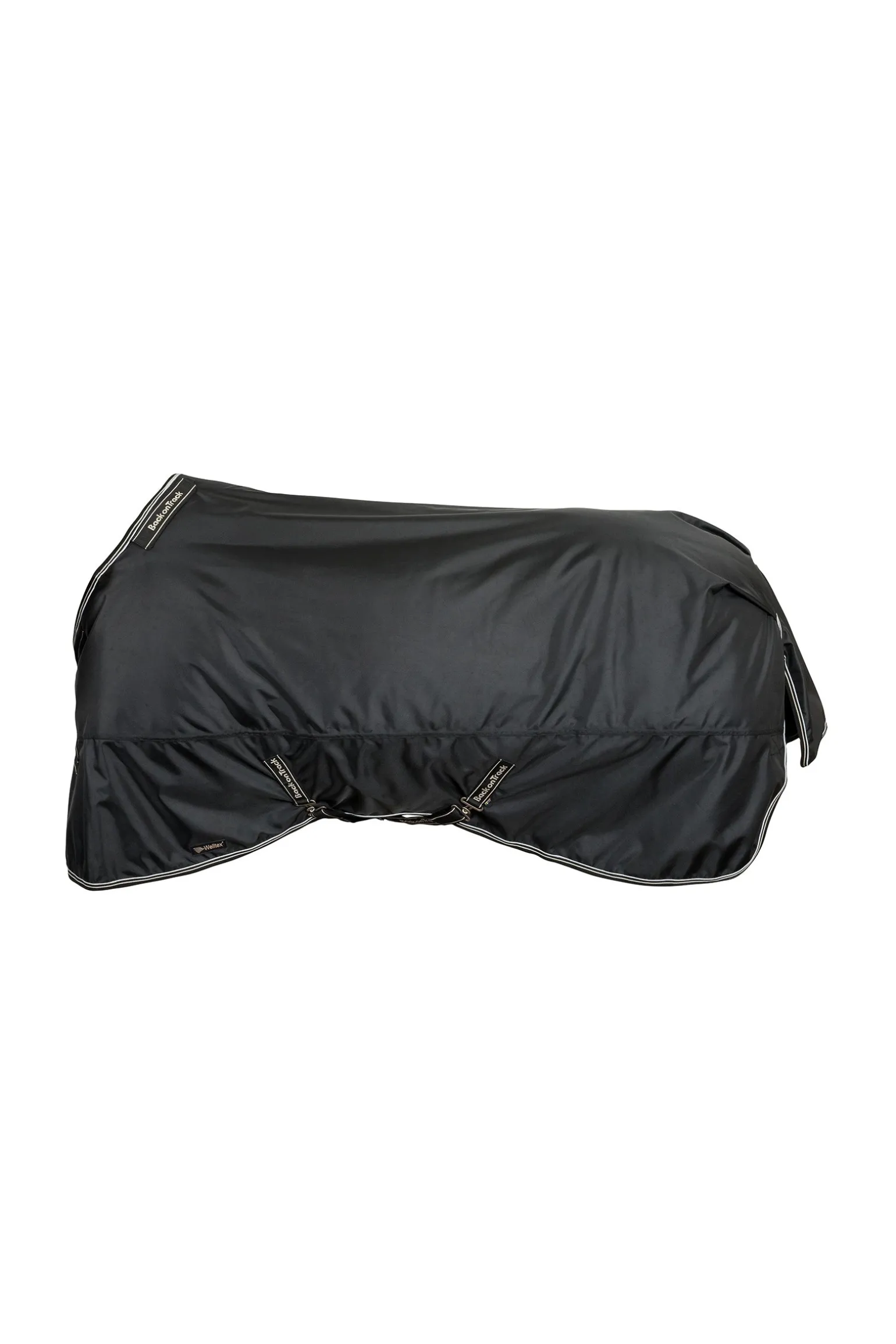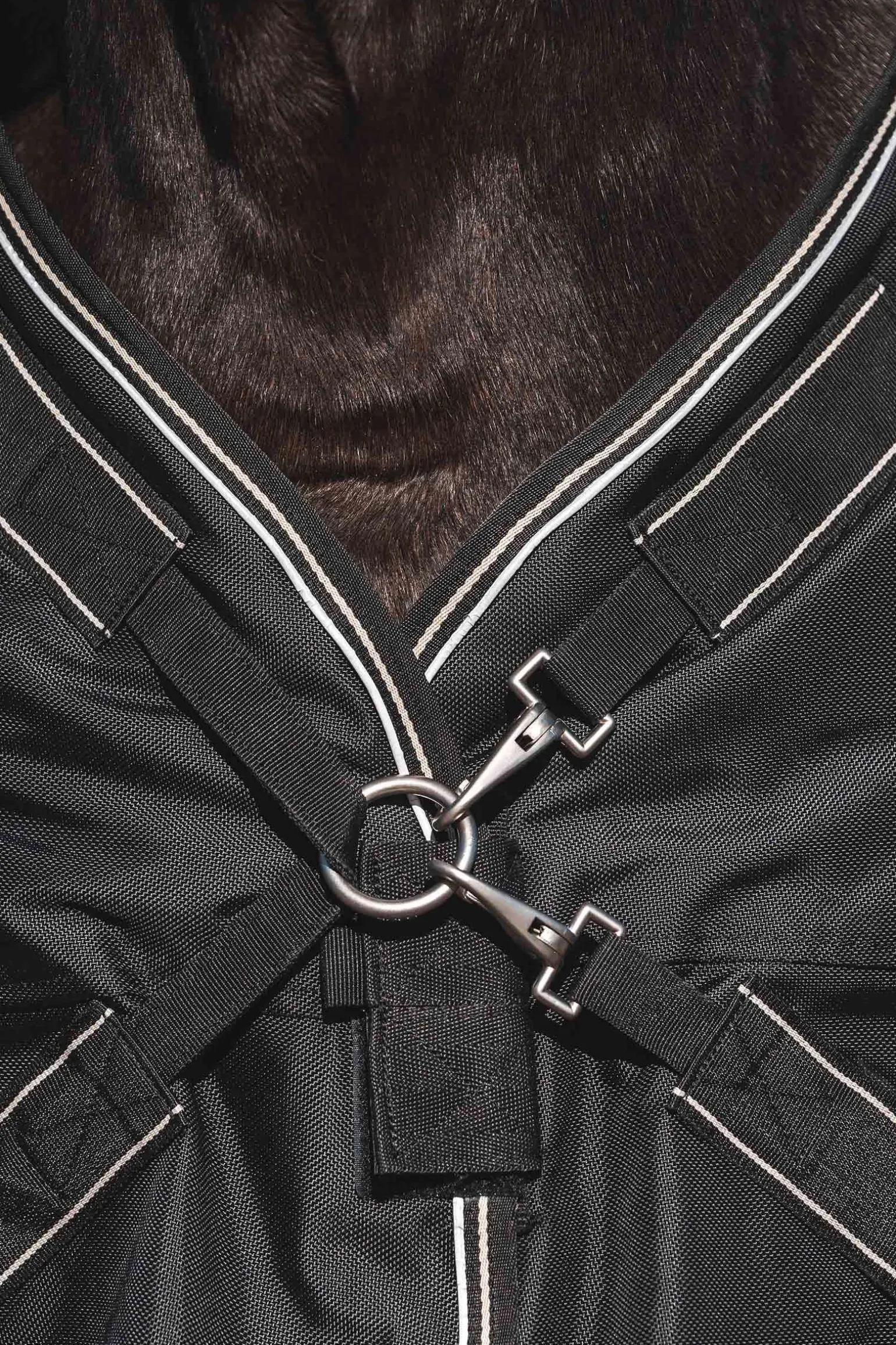 Obsidian ist eine äußerst elegante, multifunktionale Weidedecke mit passendem Halsteil. Die anatomische Passform und die weiche Schaumstoffpolsterung oben auf dem Widerrist heben die Decke leicht an, um den Druck zu mindern und den Komfort zu erhöhen. Die Decke gibt es in drei verschiedenen Ausführungen: die Basisversion ohne Füllung (#345230), eine etwas dickere Version mit 150 g Füllung und eine warme Version mit 300 g Füllung (#345232), die den Anforderungen kalter Winterbedingungen gerecht wird. Sowohl Decke als auch Halsteil bestehen aus einer atmungsaktiven, wasserabweisenden Außenschicht (5000mm-3000gsm) und einer Innenschicht aus gewebtem Welltex®-Gewebe, die dem Fell des Pferdes am nächsten ist. Die glatte Oberfläche des Futters schützt das Fell vor Scheuerstellen, und der Stoff reflektiert die Infrarotenergie intensiv und stark. Durch die große Größe der Decke kann Welltex® seine therapeutische Wirkung auf eine große Fläche des Pferdekörpers ausüben. Obsidian hüllt das Pferd in eine weiche Umarmung, die dazu beitragen kann, die Durchblutung aller großen, wichtigen Muskelgruppen anzuregen – was sie zu einer hervorragenden Wahl vor und nach jeder Aktivität sowie während der Ruhe- und Erholungsphase macht. Die Decke wird durch doppelte Brustschnallen, gekreuzte Gurte und eine kunststoffummantelte Schweifkordel mit D-Ringen an ihrem Platz gehalten. Das Design ermöglicht eine einfache und stabile Befestigung an Back on Track-Linern.