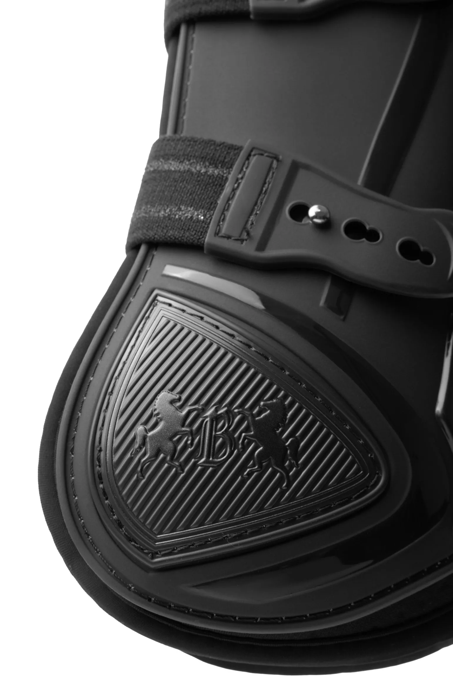 Springgamaschen mit zwei Riemen und elastischem Pin-Verschluss für sicheren Halt. Stoßabsorbierende PU-Außenschale für optimalen Schutz. Weiche Polsterung für maximalen Komfort. Silikon-Logo für eine stilvolle Optik. Pflegeleicht und schnelltrocknend.