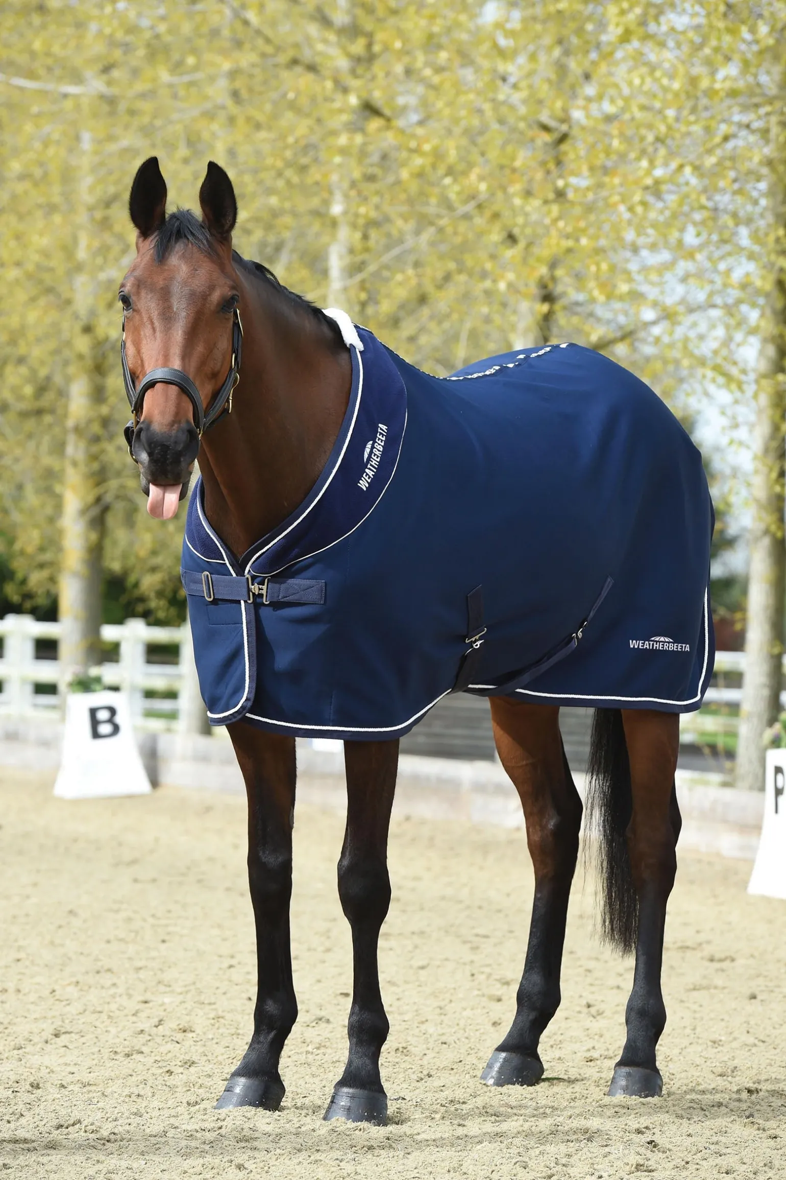 Die WeatherBeeta Opulence Decke mit Standardhalsausschnitt ist eine Turnierdecke, die nicht nur gut aussieht, sondern auch dafür sorgt, dass dein Pferd sauber, ordentlich und warm bleibt. Diese hochwertige Turnierdecke hat ein Fleece-Futter für mehr Komfort, während der äußere Stoff Schmutz und Heu abweist, damit die Decke bei Turnieren immer sauber bleibt. Der stilvolle Fleecekragen mit kontrastierenden Paspeln und dem gestickten WeatherBeeta-Logo am Halsausschnitt und am hinteren Teil gibt der Decke einen Hauch von Klasse. Diese Pferdedecke hat einen einfach verstellbaren Vordergurtverschluss mit Klettband, niedrige Kreuzgurte, Boa-Fleece am Widerrist für zusätzlichen Komfort und eine elastische PVC-Schweifkordel für einfache Reinigung.
