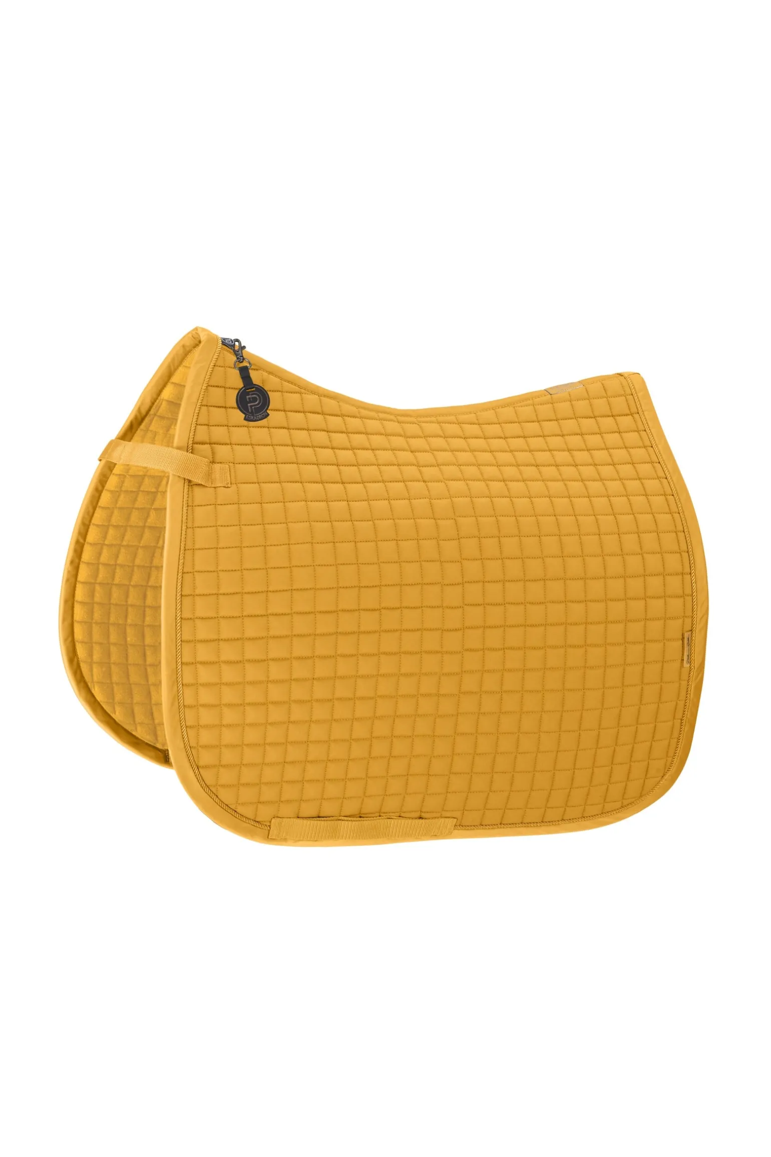 Diese Dressurschabracke verfügt über eine strapazierfähige Baumwolloberfläche und ein weiches Molton-Innenfutter für zusätzlichen Komfort. Die kompakte Steppung und formstabile Füllung sorgen für langanhaltende Passform und Funktion. Eine dezente Ton-in-Ton-Kordel auf der glänzenden Einfassung verleiht eine elegante Note. Für optimale Stabilität ist die Schabracke mit einer Gurtstrippe mit dreifacher Fixierung ausgestattet. Abgerundet wird das Design durch ein Platinum-Flaggenetikett auf beiden Seiten.