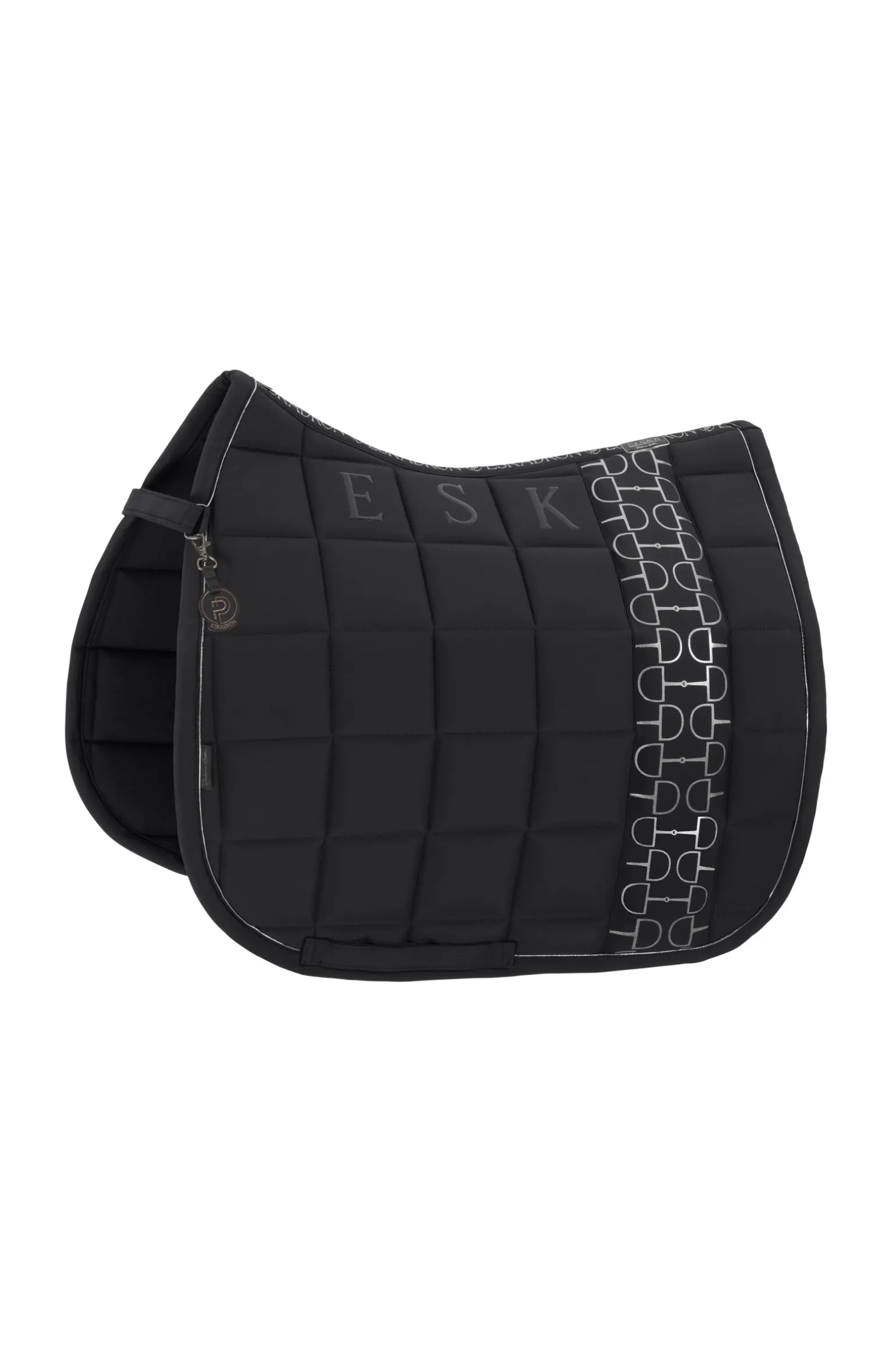 Diese Dressurschabracke vereint Innovation und Strapazierfähigkeit mit einem stilvollen, modernen Look. Die robuste Softshell-Oberfläche mit Cool-Dry-Futter sorgt für optimalen Komfort und Feuchtigkeitsmanagement. Das voluminöse Big Square-Steppmuster verleiht der Schabracke ein modernes Design, ergänzt durch vertikale Streifen mit dezentem Gebissprint. Rutschhemmende Silikonflächen im Sattelbereich bieten zusätzliche Sicherheit, während die Softshell-Einfassung mit einer edlen Metallkordel versehen ist. Ein dekorativer Schriftzug auf dem Rückenband rundet das Erscheinungsbild ab. Ausgestattet mit dem Innostrap-System und einer dreifachen Gurtbefestigung für präzise und sichere Positionierung.