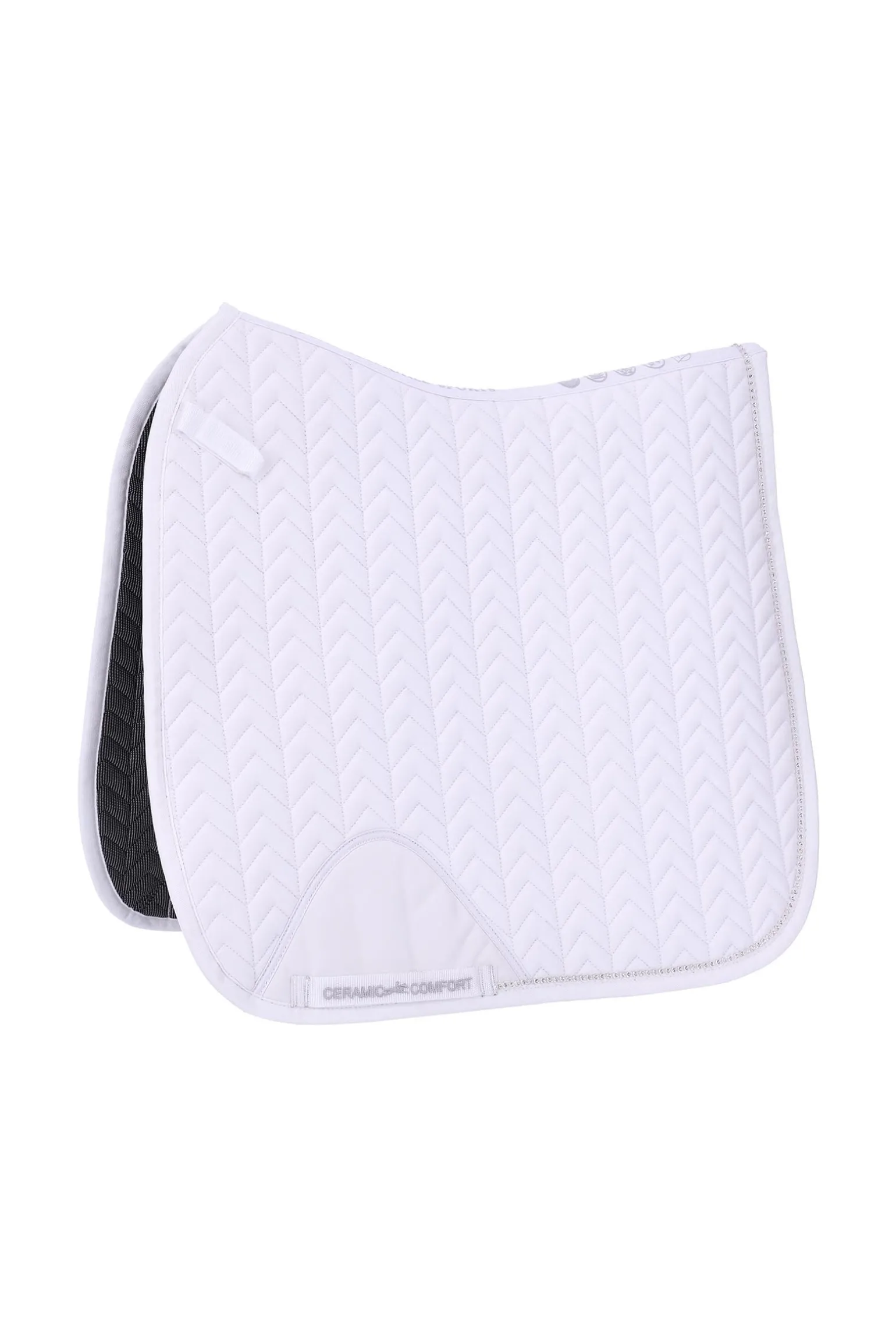 Die Power Pad Ceramica Style Schabracke bietet die perfekte Kombination aus Funktionalität und Stil für engagierte Reiter. Diese Baumwoll-Schabracke verfügt über eine funktionale, schnell trocknende „Keramik“-Rückseite, die den Komfort und das Feuchtigkeitsmanagement verbessert. Das PU-Badge im Sattelgurtbereich schützt den Oberstoff und sorgt so für Langlebigkeit und Strapazierfähigkeit. Mit ihrem modernen Fischgrät-Design hebt sich diese Schabracke in jeder Reitarena hervor. Die Logo-Stickerei entlang der Rückenlinie und auf den Gurtstrippen verleiht einen eleganten Akzent, während das strapazierfähige Einfassband für eine lange Lebensdauer sorgt.
