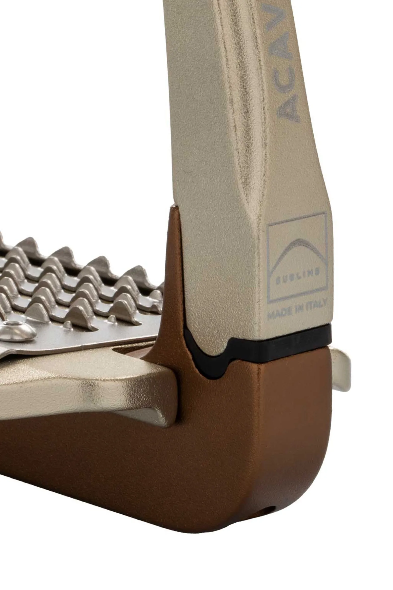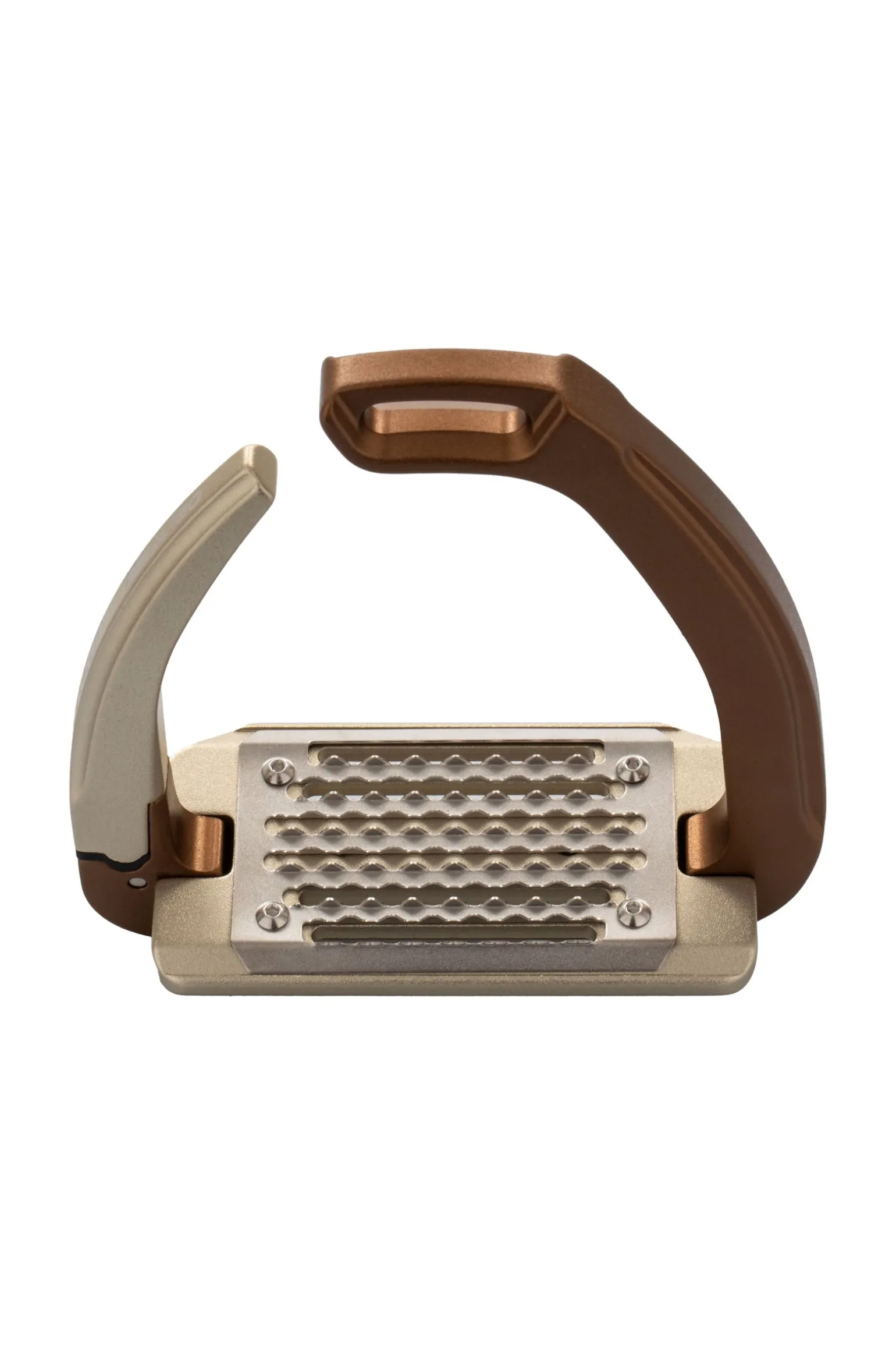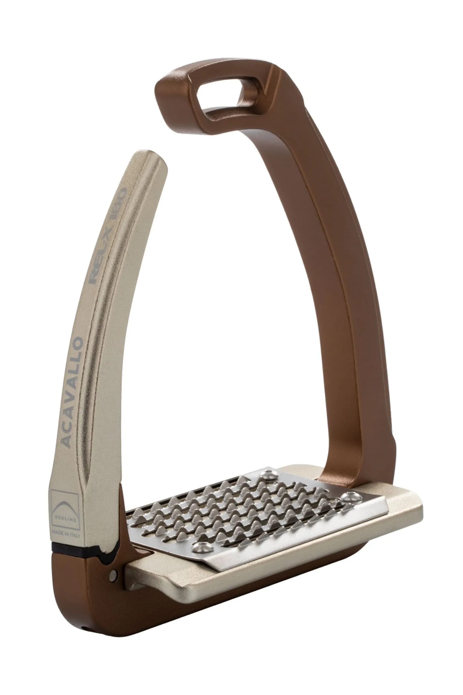 Gefertigt aus hochwertigem, zertifiziertem eloxiertem Aluminium, verfügen diese Steigbügel über eine Trittfläche aus Edelstahl, das Ergebnis einer sorgfältigen Materialauswahl und -kombination, durchgeführt von Acavallo® im Rahmen einer umfassenden Produktforschung. Edelstahl bietet makellosen Korrosionsschutz und gewährleistet außergewöhnliche Haltbarkeit über lange Zeit. Verlängerte horizontale Öffnungen sind integraler Bestandteil des Designs und verhindern die Ansammlung von Sand und Schmutz, wodurch ein unvergleichlicher Halt bei allen Reitbedingungen gewährleistet wird. Die durchdachte Position der Öffnung des Verriegelungs- und Freigabemechanismus, leicht oberhalb der Trittfläche, verhindert jegliches versehentliche Abrutschen. Ebenso sorgt der Öffnungsmechanismus am oberen Ende der Steigbügel für zuverlässige Funktion in Notsituationen und verhindert Verzögerungen durch Schmutz. Die fünfgradige Neigung der Trittfläche hilft, eine korrekte Haltung beim Reiten beizubehalten, und entlastet die Gelenke. Das Ergebnis ist eine deutliche Entlastung der Gelenke, insbesondere der Knie und Hüfte, sowie eine größere Bewegungsfreiheit der Knöchel.