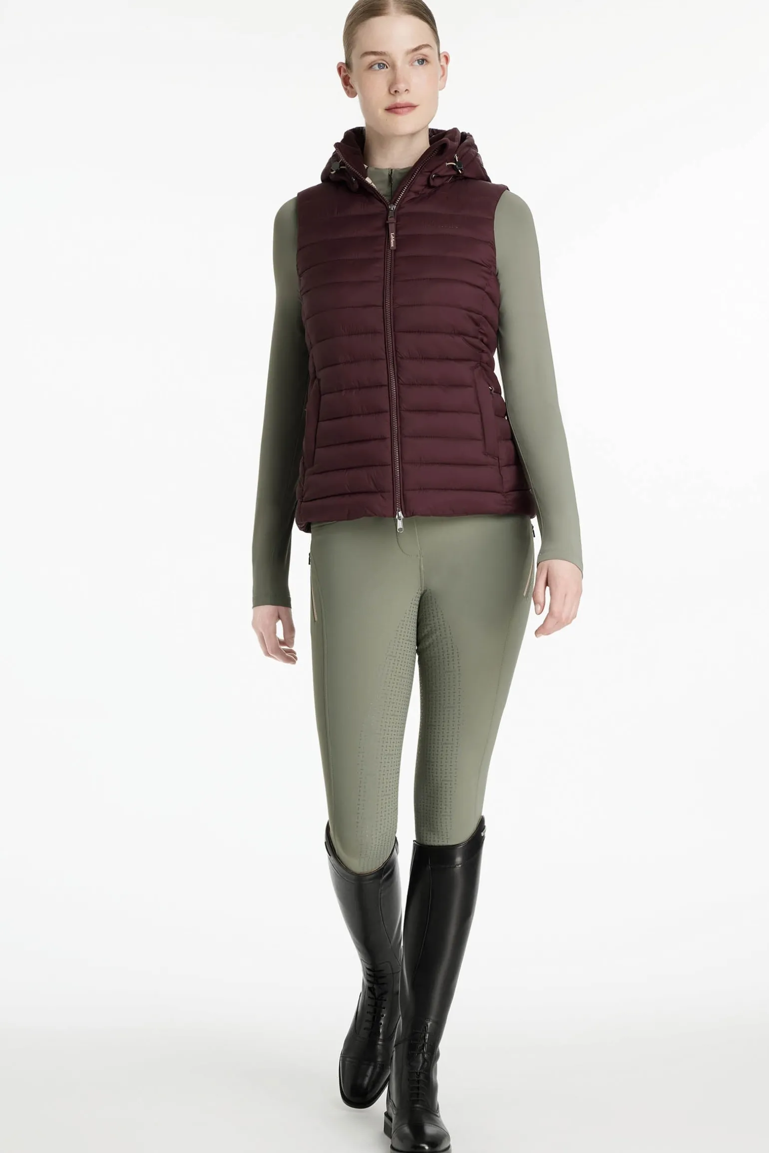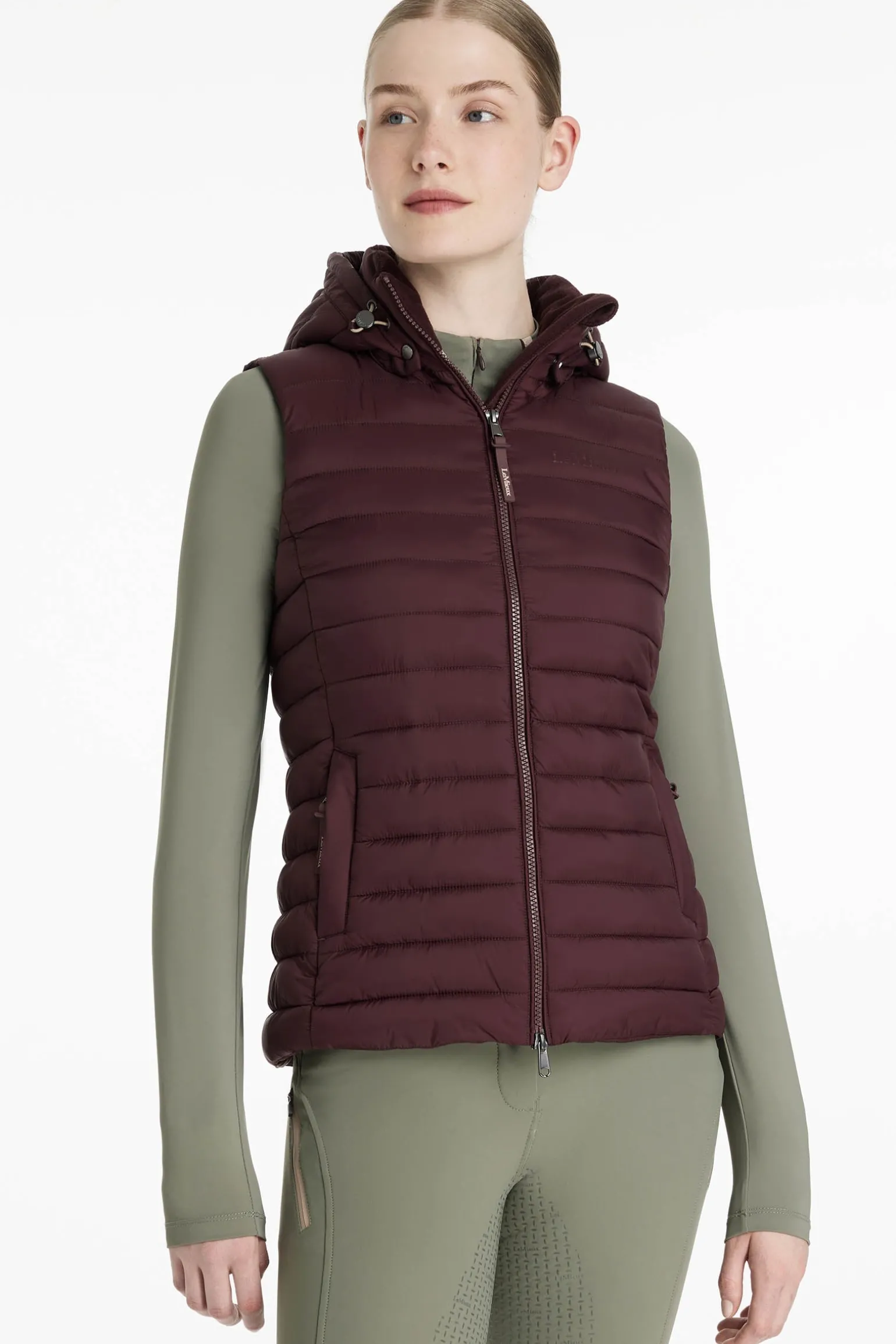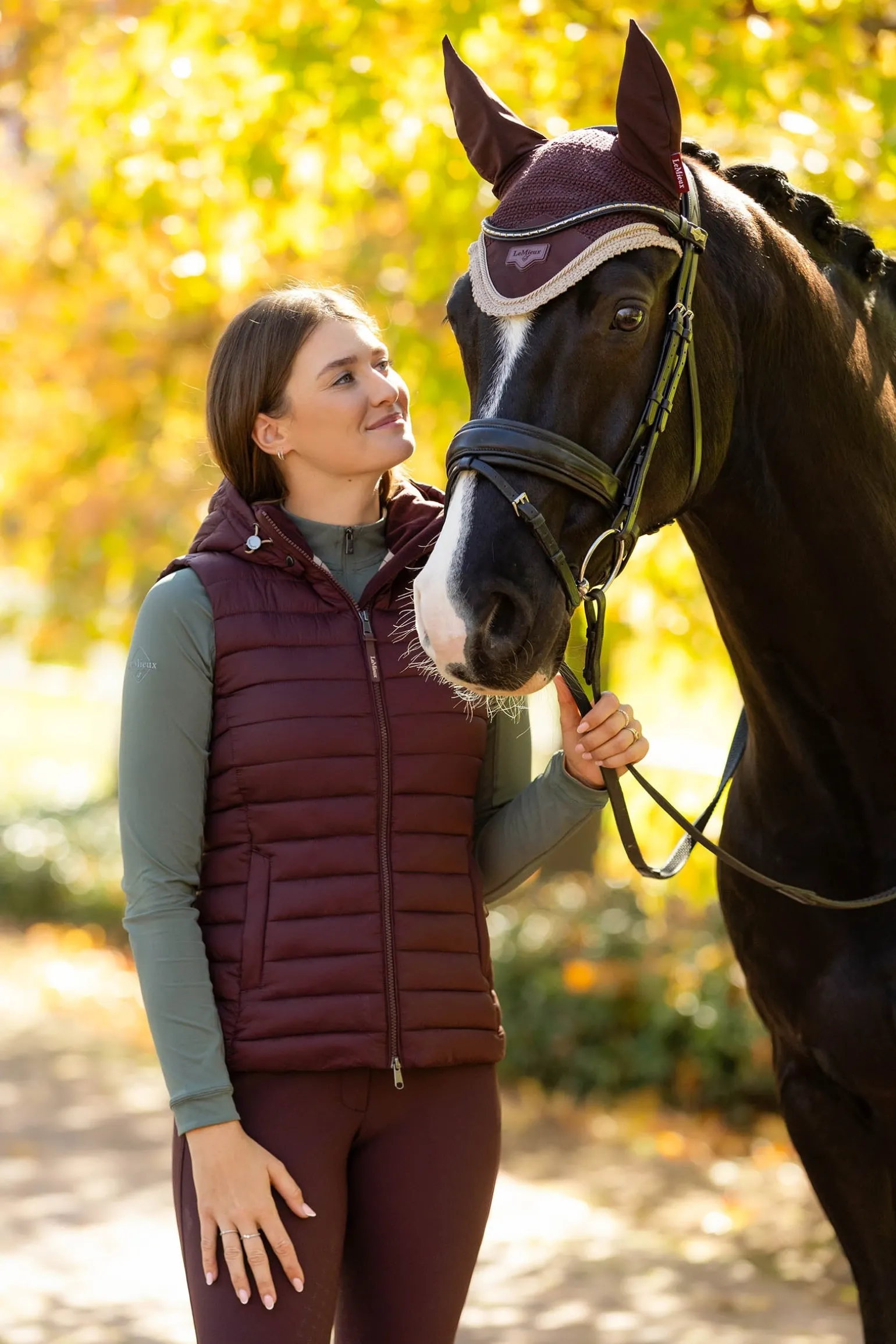 Diese klassische, leichte, wasserabweisende Steppweste macht alles mit. Als ein Schritt hin zu mehr Nachhaltigkeit ist sie mit recycelten Repreve® Daunen gefüllt. Diese sind leicht und warm und verfügen über eine schöne, dauerhafte Bauschkraft. Bereite dich mit dieser wasserabweisenden Weste auf unvorhersehbar kühle Tage vor. Die abnehm- und verstellbare Steppkapuze bietet Vielseitigkeit und lässt sich an wechselnde Wetterbedingungen anpassen. Die luxuriösen Metallelemente zeugen von der hervorragenden Qualität, die du von LeMieux erwarten kannst. Der strapazierfähige Zwei-Wege-Reißverschluss vorne eignet sich hervorragend zum Reiten und verhindert Kratzer am Sattelknauf. Ein schmeichelnder und stilvoller Schnitt, Reißverschlusstaschen und ein dezentes LeMieux Branding machen diese Jacke zu einem Must-have für alle Aktivitäten, ob beim Reiten, bei der Arbeit im Stall oder bei Besorgungen.