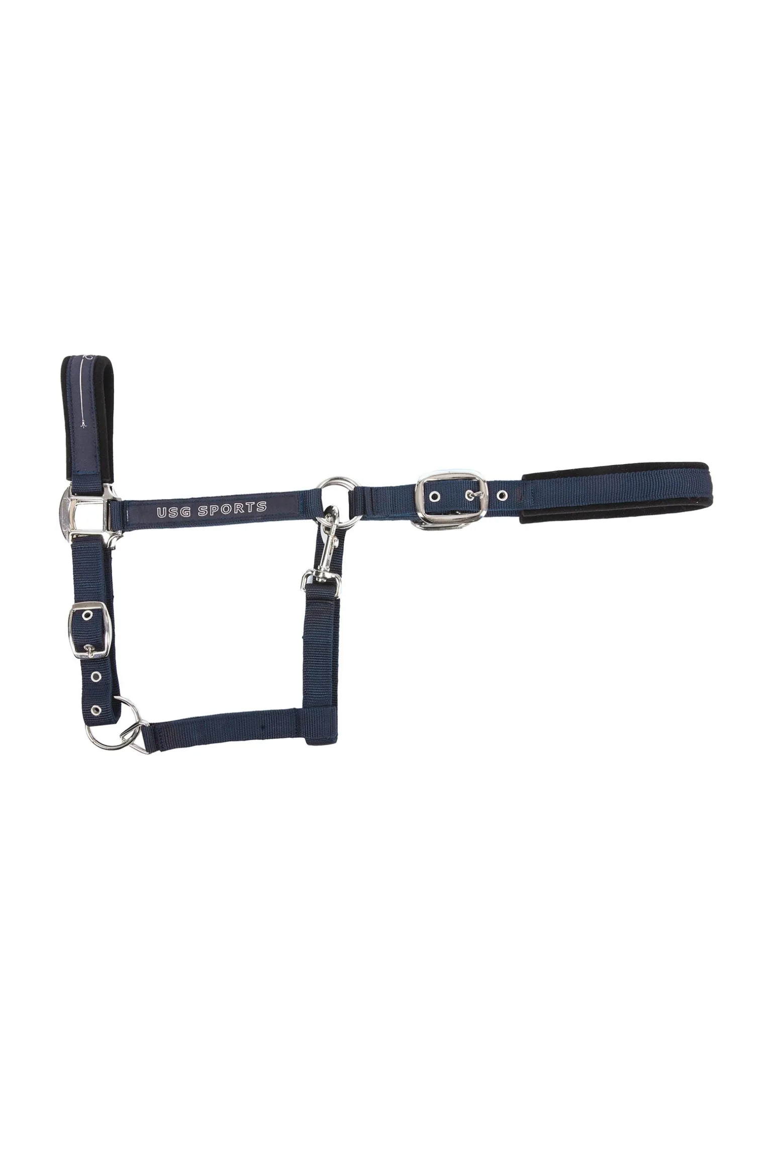 Halfter „Rosi“ , silberfarbene Beschläge, Genickstück und Nasenriemen soft unterlegt, USG SPORTS Logo und Rosenverzierung auf dem Nasenband.