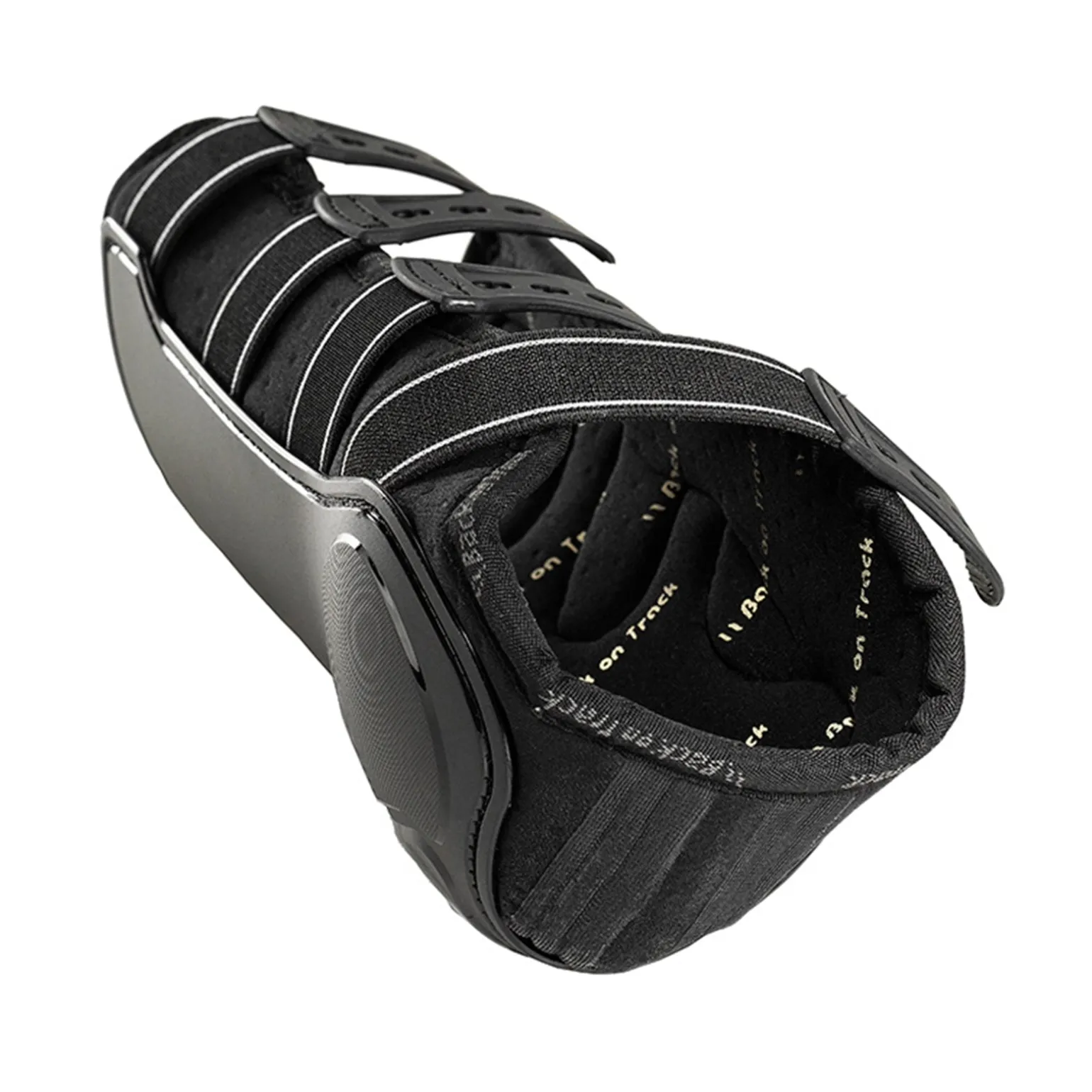 Die Back on Track Royal Arbeitsgamasche besteht aus TPU, überzogen mit Nylon für hohe Dichte und mit einer Verstärkung der Lauffläche des Stiefels. Das dicke Neopren auf der Innenseite ist für mehr Ventilation und Belüftung perforiert, erlaubt zu „atmen“. Extra starkes Elastik und Messingschnallen sorgen für einen exzellenten Halt.