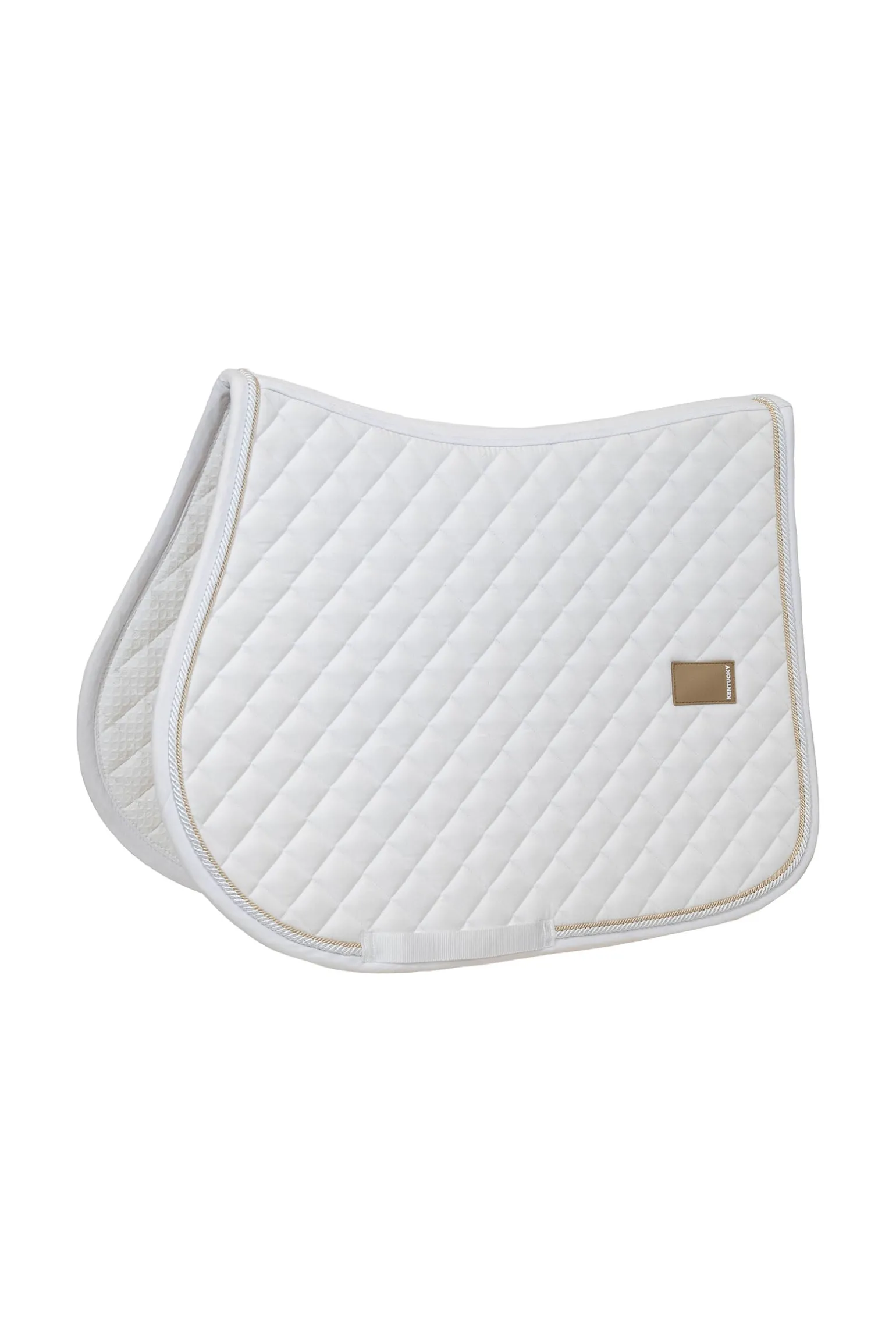 Sorge mit dieser Schabracke Diamant für einen eleganten Look und bewundernde Blicke. Diese Schabracke kombiniert elegantes Design mit höchstem Tragekomfort, den du sehen und spüren kannst. Die im klassischen Stil gehaltene Schabracke Diamant mit auffälliger Bordüre verleiht deinem Pferd einen Hauch von Exklusivität. Das edle Design sorgt für bewundernde Blicke – ob im Training oder auf dem Turnier. Die Schabracke besteht aus einem feuchtigkeitsabsorbierenden und schnelltrocknenden Baumwoll-Polyester-Gemisch. Mit ihr fühlt sich dein Pferd auch bei intensiven Trainingseinheiten wohl und kommt nicht unnötig ins Schwitzen. Innenliegend verfügt die Schabracke über eine atmungsaktive Polsterung, die einen effektiven Dämpfungseffekt zwischen Sattel und Rücken bietet. Das aufgenähte Kentucky-Logo, aus hochwertigem Gummi, verkörpert die Kentucky-Qualität bereits von Weitem. Dank der anatomischen Form passt sich die Schabracke perfekt an den Rücken deines Pferdes an und entlastet den Widerrist optimal. Kein Verrutschen, kein Drücken, kein Reiben – einfach ein sicherer Sitz, damit du selbstbewusst und kontrolliert reiten kannst, ohne dass dein Pferd beeinträchtigt wird.