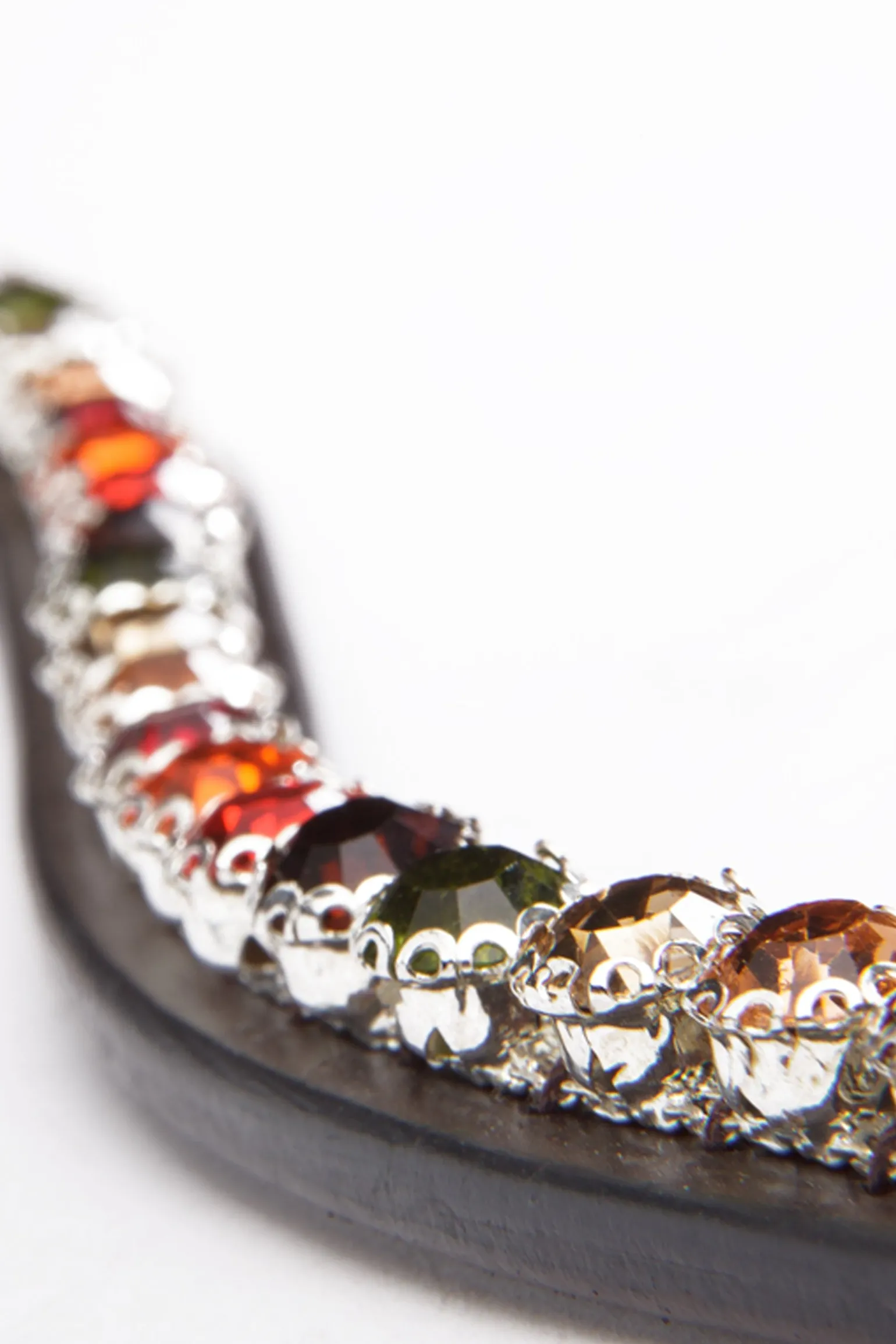Sporenriemen „Seasons dreams“ aus weichem, langlebigem Qualitätsleder mit farbigen Strasssteinen auf den Schlaufen. Paarweise.
