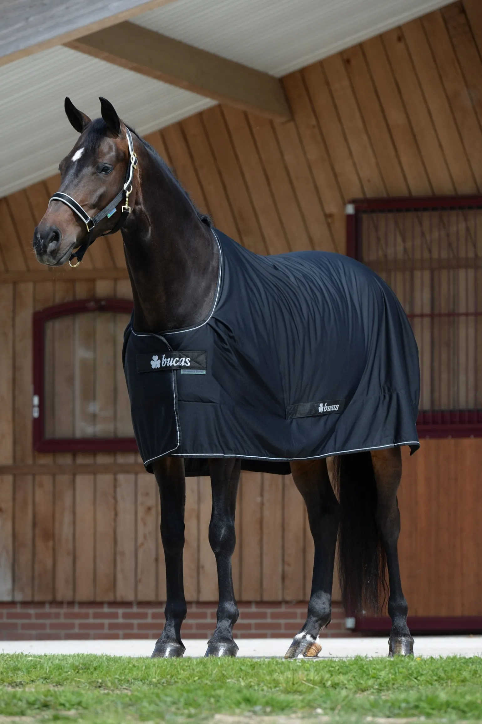 Die Shamrock Power ist eine ideale, multifunktionale Decke, die sich hervorragend als Abschwitz-, Transport- oder leichte Stalldecke eignet. Sie besteht aus zwei Lagen Bucas Stay-dry-Stoff. Die Shamrock Power hat ein antibakterielles Stay-dry-Innenfutter und eine Außenseite aus Polyester. Der Stay-dry-Stoff kann direkt auf ein nasses Pferd gelegt werden, leitet die Feuchtigkeit ab und sorgt dafür, dass Dein Pferd schneller trocknet. Das antibakterielle Innenfutter hält die Decke frisch und in gutem Zustand. Die Polyester-Außenseite verhindert, dass Einstreu haften bleibt, sodass Dein Pferd sich hinlegen kann, ohne dass viel Einstreu an der Decke hängen bleibt – im Gegensatz zu Fleece-Abschwitzdecken.