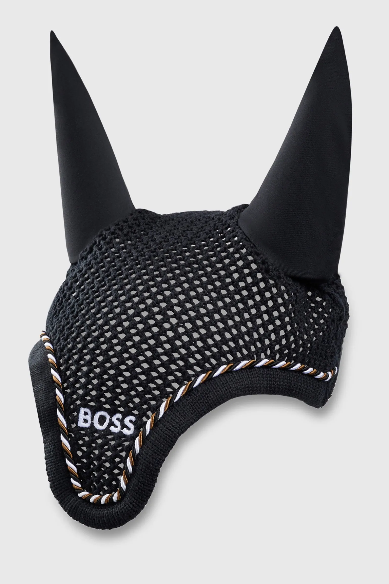 Gehäkelte Fliegenmütze in modermen Look, weissem BOSS Logo und Signature Stripe Einfassung.