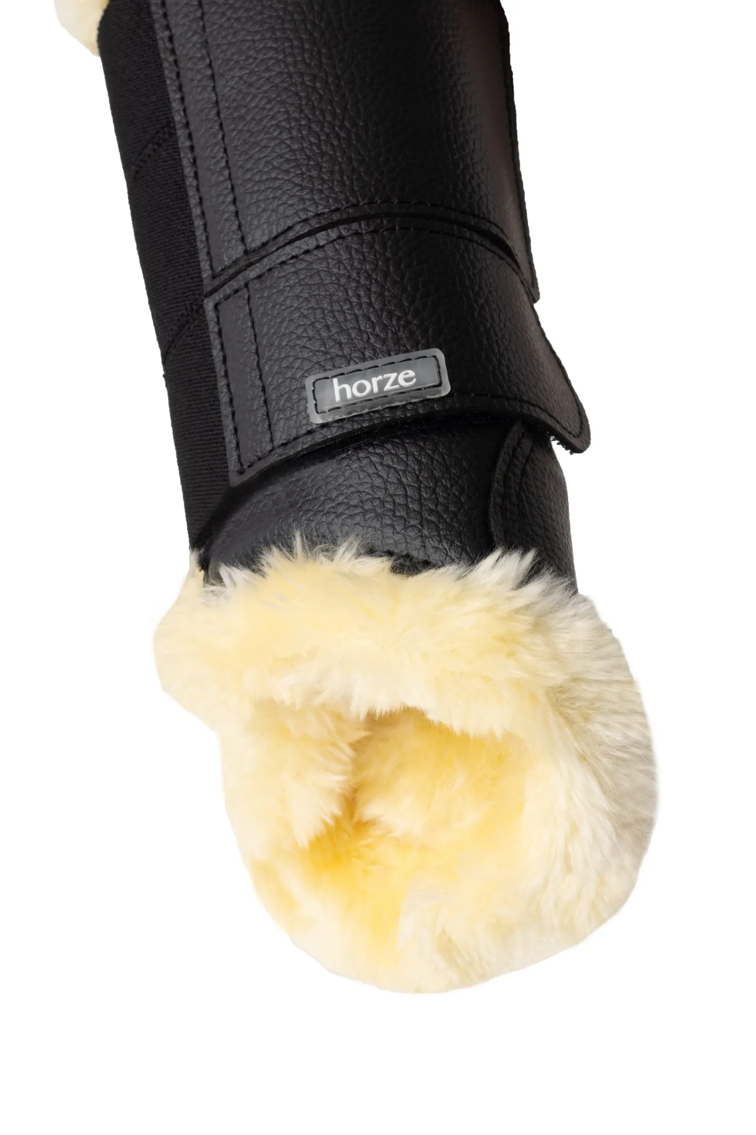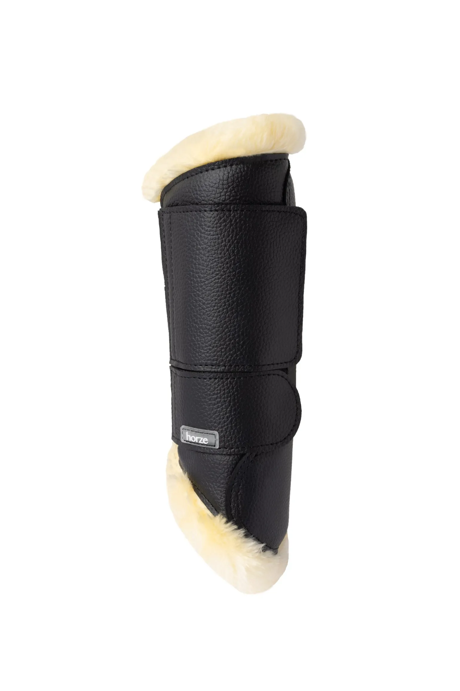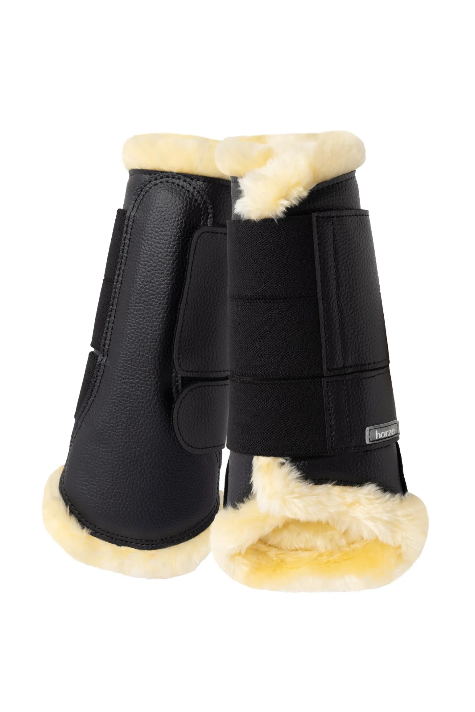 Die qualitativ hochwertigen Gamaschen schützen Ihr Pferd während des Trainings oder des Turniers mit einem weichen Fellimitat aus Schaffell und einer harten, aber flexiblen Hülle. Diese Gamaschen umschließen das Röhrbein und den Fesselkopf und bieten Schutz vor Schlägen und Stößen.