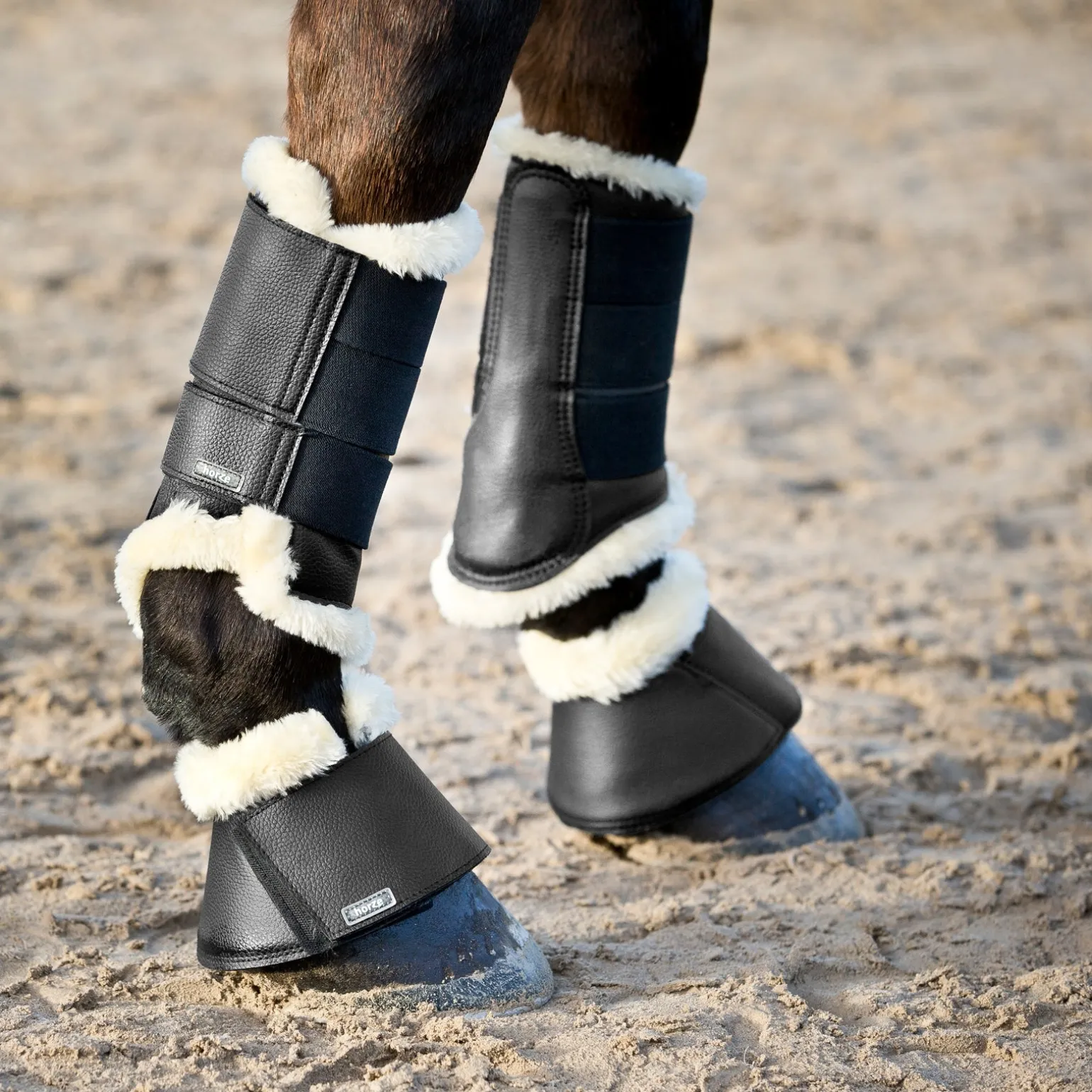 Die Hufglocken haben eine Einfassung aus Kunstpelz, welcher die Fesselbeuge beim Springen oder im Training schützt.