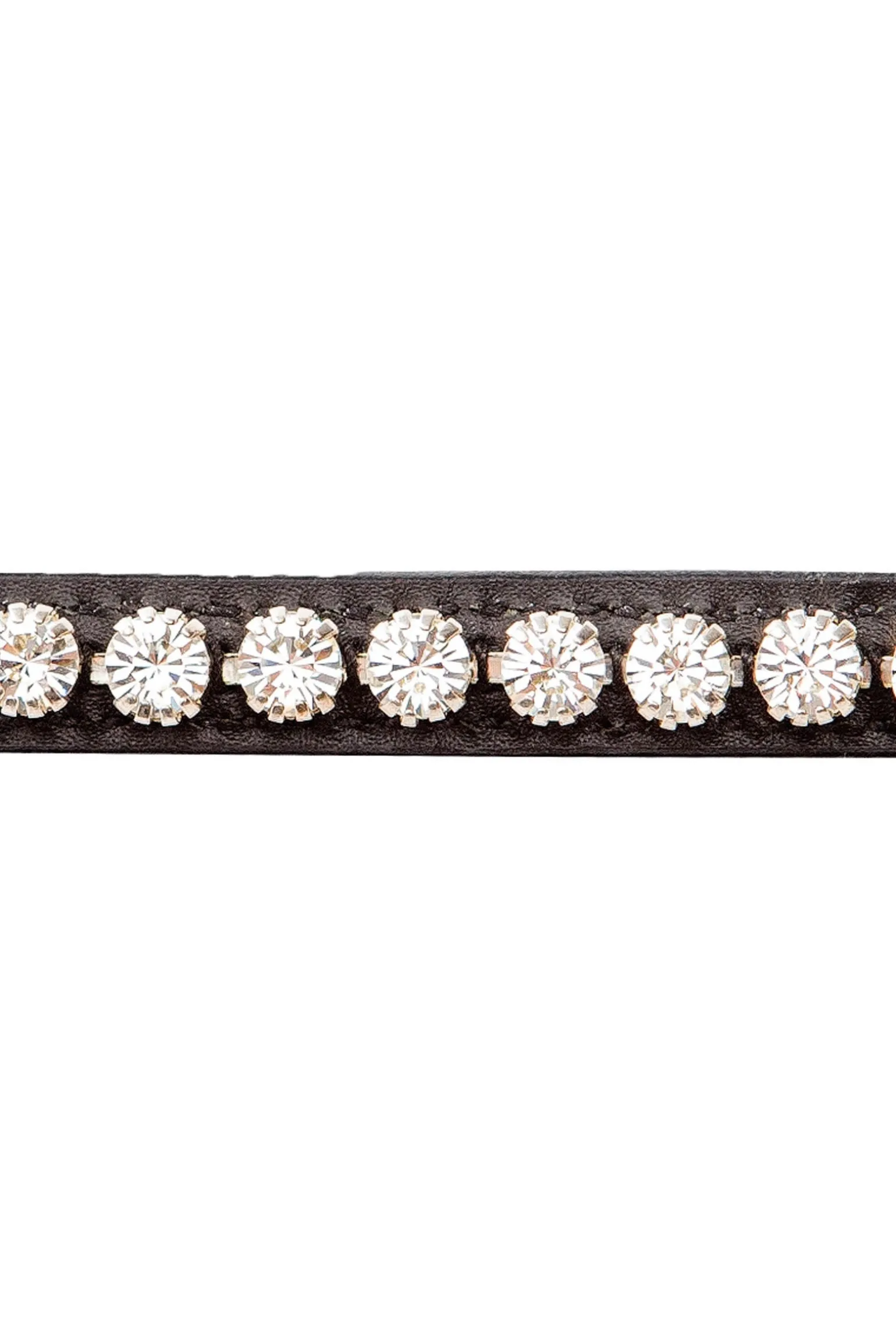 Besonders schmales, gerades Stirnband mit großen weißen Strasssteinen.