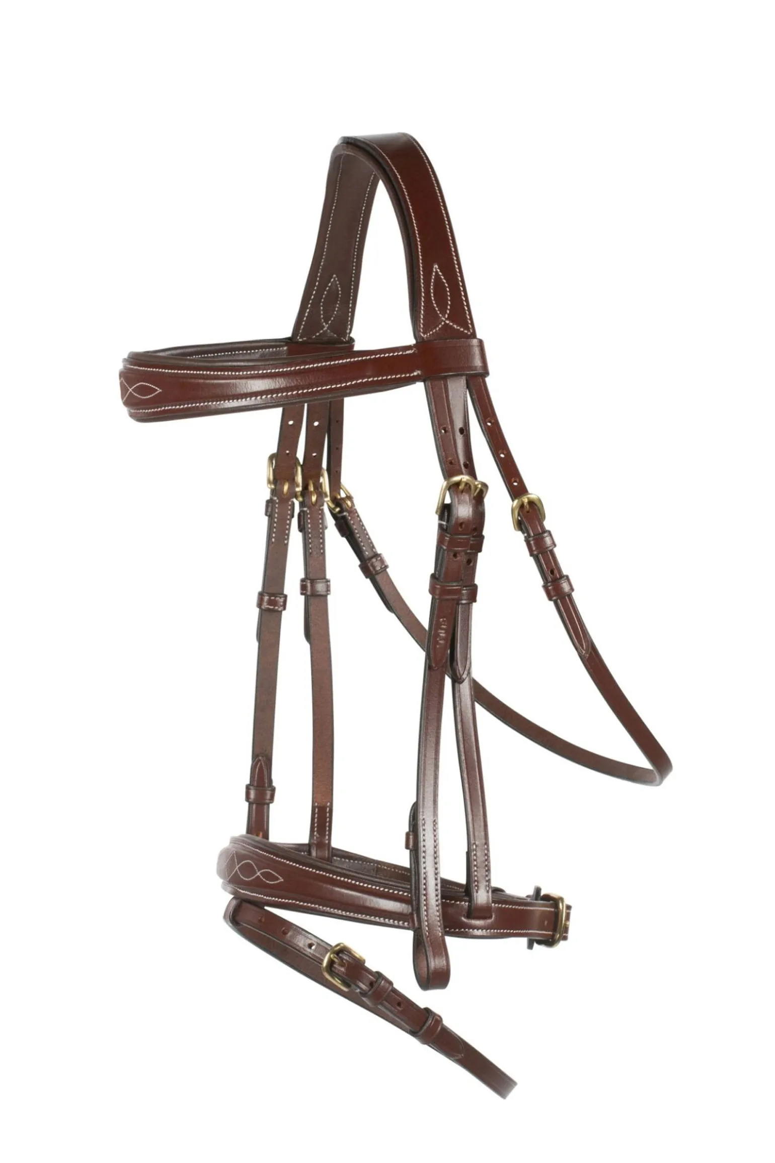 Diese elegante Trense ist am Nasen- und Stirnriemen dekorativ bestickt. Die weiche Polsterung lässt sie bequem am Pferdekopf anliegen. Gummizügel geben dir festen Halt. Messingbeschläge runden die Trense perfekt ab.