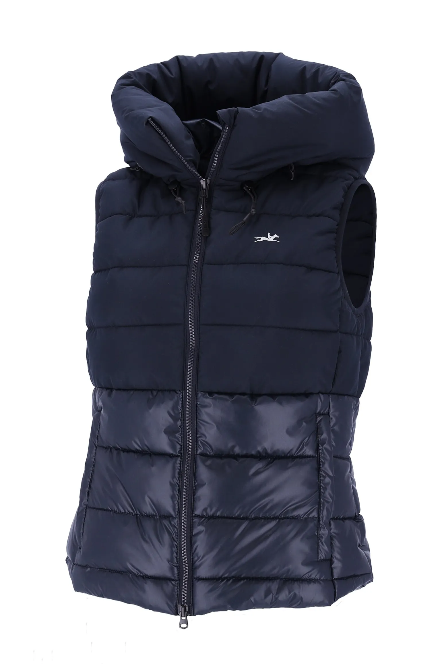Die sportive Damen Hybridweste SPMariella Style kombiniert Funktionalität mit einem modernen Design für aktive Tage im Freien. Der 2-Wege-Reißverschluss ermöglicht eine individuelle Anpassung und Flexibilität. Leistentaschen mit einem verdeckten Reißverschluss bieten sicheren Stauraum für Ihre kleinen Utensilien. Eine mit Druckknöpfen verstellbare Kapuze schützt vor Wind und Wetter, während die Logo-Pferdestickerei im Brustbereich für einen eleganten Akzent sorgt. Das verlängerte, wärmende Rückenteil bietet zusätzlichen Schutz und Komfort. Perfekt für Outdoor-Aktivitäten wie Reiten oder Spaziergänge, vereint diese Weste Stil und Funktionalität.