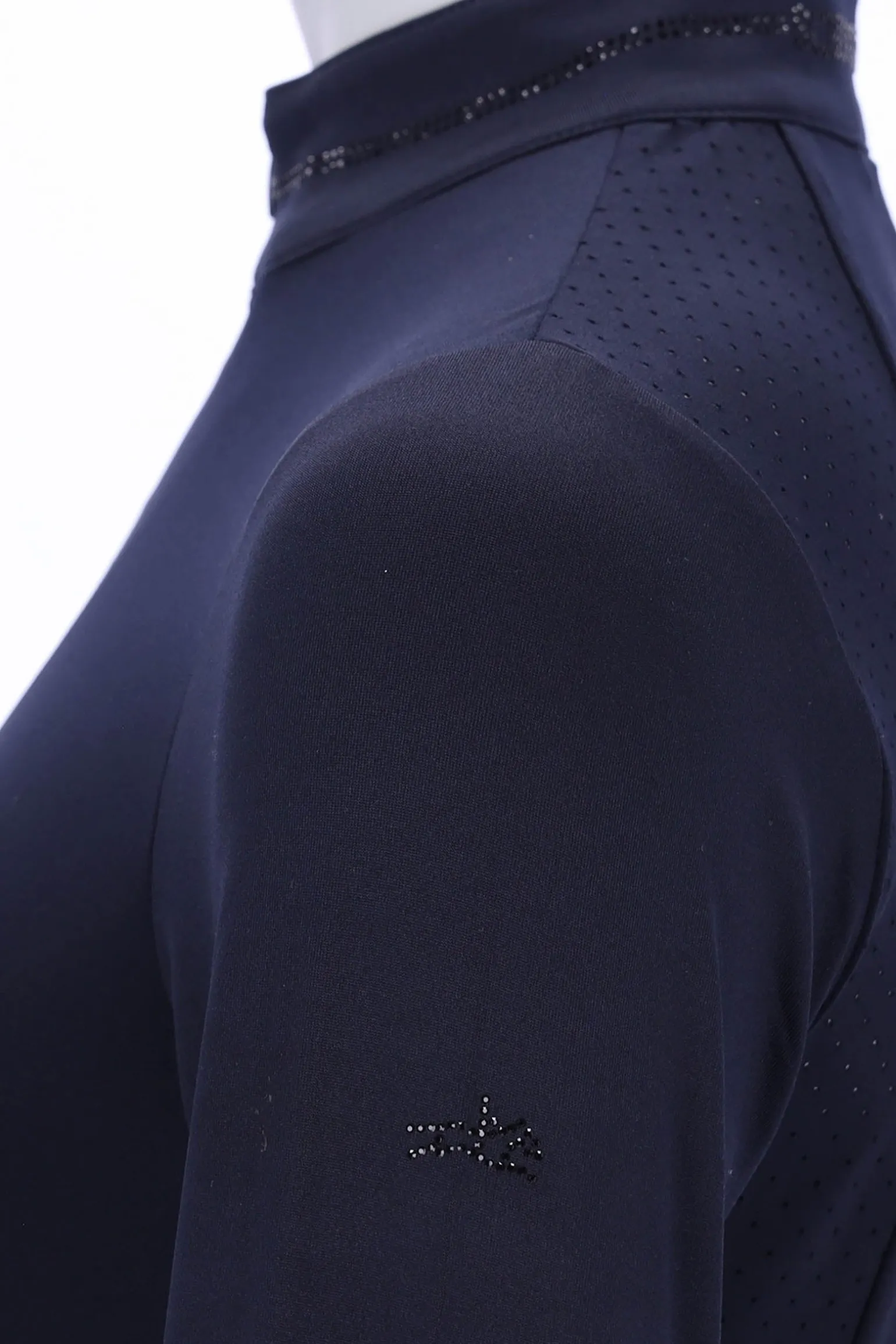 Das atmungsaktive Damen Winter-Trainingsshirt SPPeppa Style bietet Ihnen höchsten Komfort und stilvolle Details für kalte Tage. Das langärmelige Shirt ist innen angerauht und sorgt damit für angenehme Wärme und ein luxuriöses Tragegefühl. Perforierte Einsätze im Rücken und an den Seiten gewährleisten optimale Belüftung und Bewegungsfreiheit während des Trainings. Der zweiteilige Stehkragen ist mit eleganten Strass Steinen verziert, die dem Shirt eine edle Note verleihen. Ein Strass Stein Logo Motiv im Rücken und Strass Stein Pferdelogo im Brustbereich und am Ärmel setzen glitzernde Akzente.
