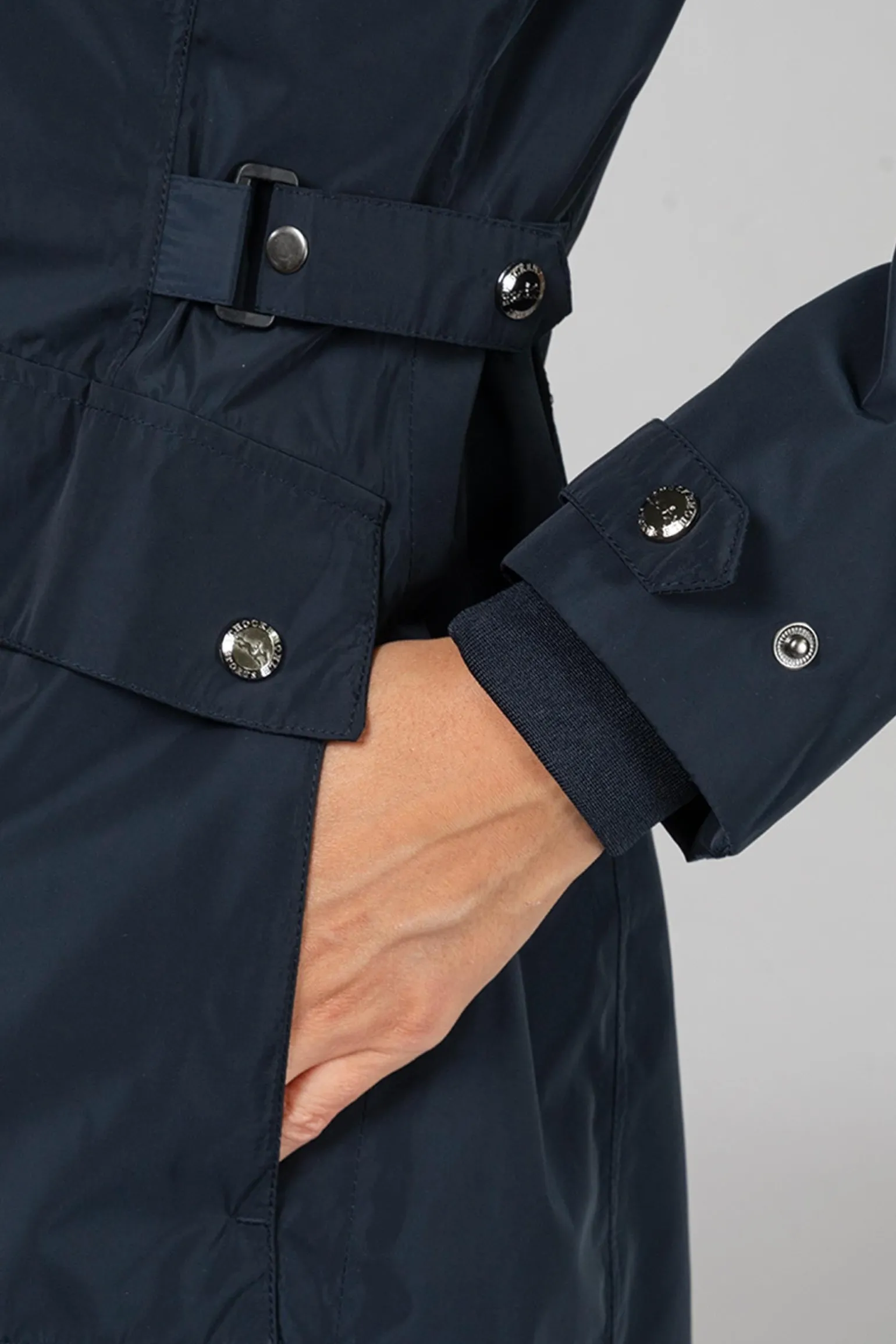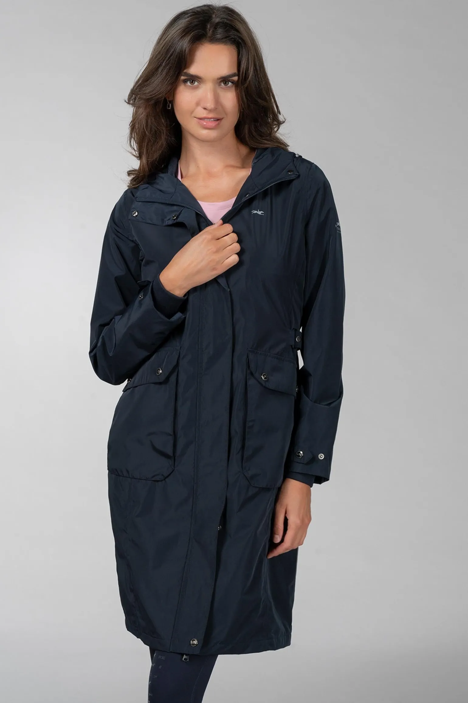 Entdecke den SPKarla Regenmantel – deine perfekte Begleitung für regnerische Tage! Dieser funktionale Regenmantel hält dich dank seiner wasserdichten Beschichtung (5000 mm Wassersäule) und getapten Nähten selbst bei starkem Regen trocken. Mit einer Atmungsaktivität von 5000 g/m²/24 Std bietet er dabei hervorragenden Tragekomfort. Die weitenverstellbare Taille lässt sich individuell anpassen, während die großen aufgesetzten Taschen mit Patten nicht nur stylisch, sondern auch praktisch sind. Ein verdeckter 2-Wege-Reißverschluss schützt dich zusätzlich vor Wind und Wetter, und der lange Reißverschluss auf der Rückseite sorgt für optimale Bewegungsfreiheit. Der verstellbare Ärmelsaum mit Jersey-Manschette sowie die reflektierenden Logos an Brust, Ärmel und Kapuze verleihen dem Mantel einen sportlichen Look und dich bei Dunkelheit besser sichtbar.