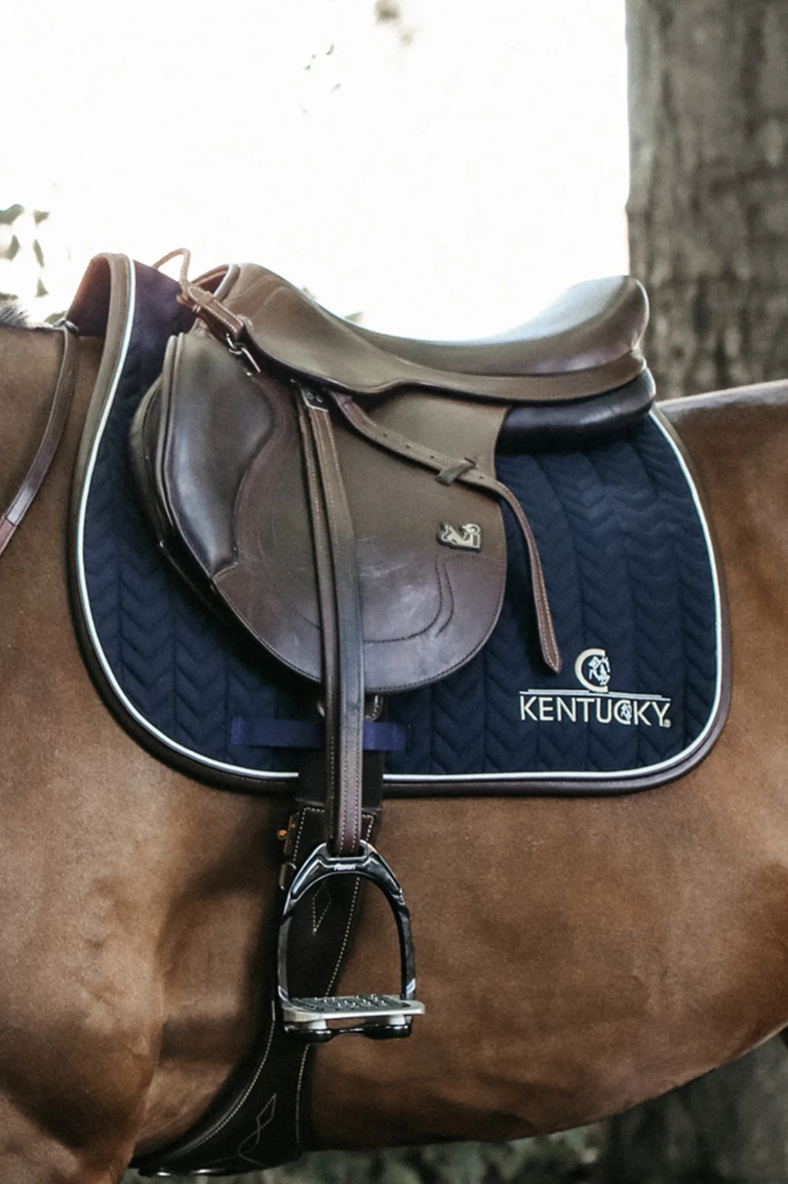 Unsere Schabracke Leather Fishbone ist für das Springen designed und bietet hervorragende Polsterung zwischen dem Rücken des Pferdes und dem Sattel und schützt gleichzeitig vor Verspannungen. Die Schabracke hat außerdem eine einzigartige Steppung aus Fischgräten. Die Schabracke hat keine lästigen Schlaufen zur Befestigung am Sattel, sondern nur einen Nylonriemen für den Gurt. Die Schabracke Leder Fishbone hat eine sehr edle Lederumfassung und das modische Kentucky-Logo.