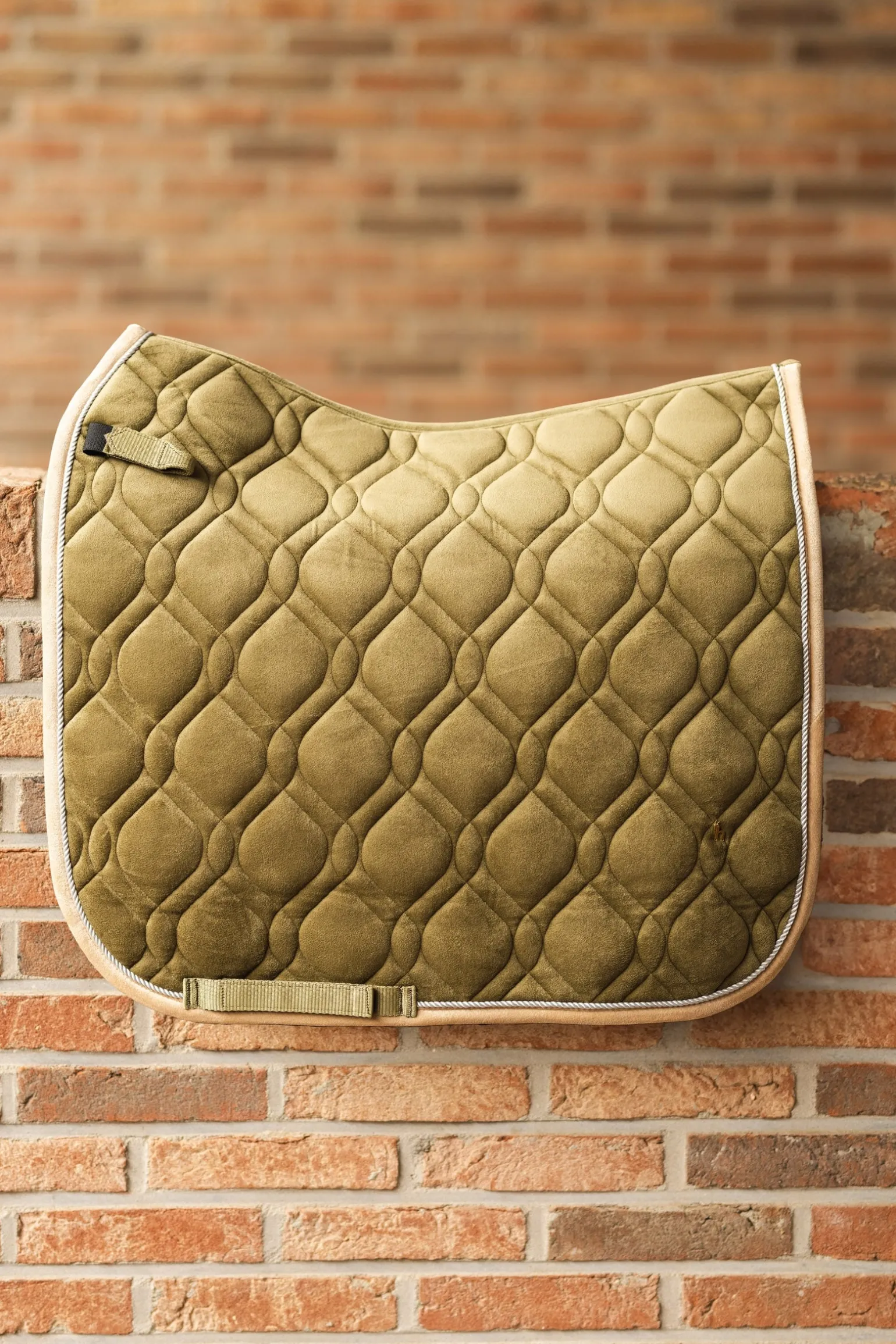 Diese Schabracke ist mit einem neuen Steppmuster versehen, das deinem Reitsport-Equipment einen Hauch von Eleganz verleiht. Das Coolmax-Futter sorgt für hervorragende feuchtigkeitsableitende Eigenschaften und hält dein Pferd auch bei intensiven Ritten trocken und komfortabel. Der Samtstoff sorgt nicht nur für eine ansprechende Optik, sondern verringert auch das Verrutschen des Sattels und bietet einen sicheren Sitz. Ausgestattet mit einer D-Ring-Befestigung und einer verstellbaren Gurtschlaufe, bietet diese Schabracke Komfort und Stabilität. Die Stickerei entalng der Wirbelsäule und das kleine goldene „h“ machen die Schabracke zu einem echten Unikat.