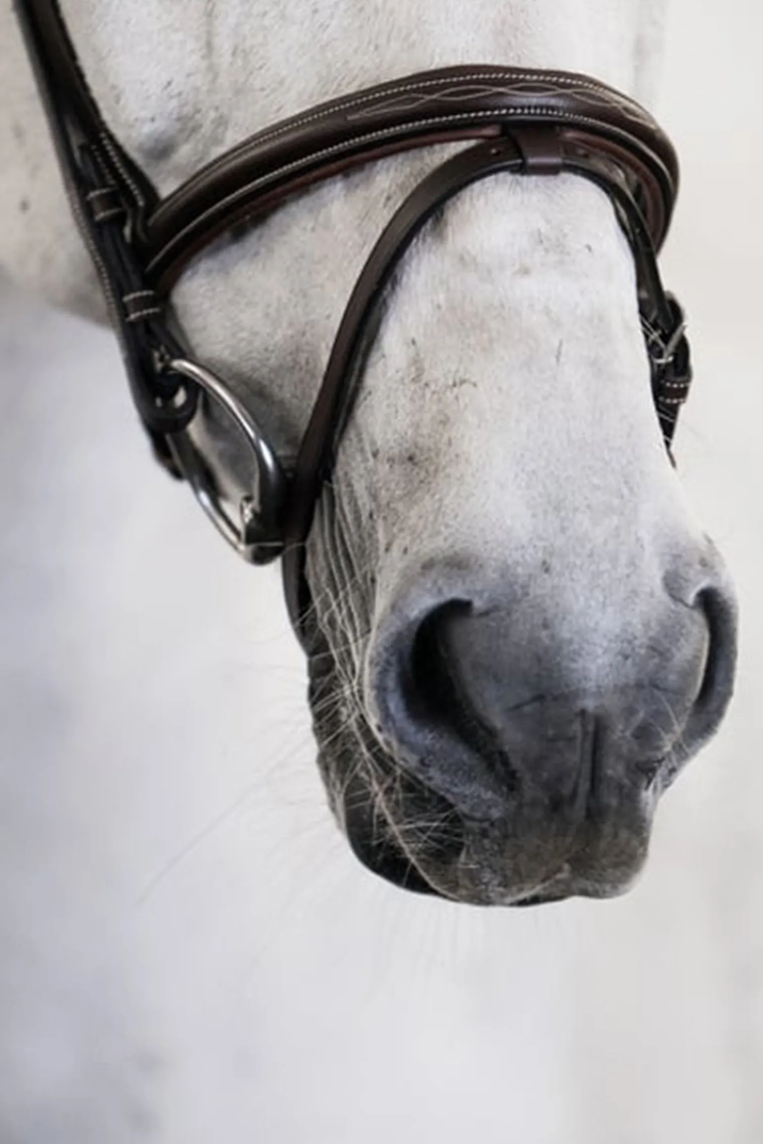 Stilvolle Trense mit klassischem Look und abnehmbarem Sperrriemen (kein Magic Flash™). Der Nasenriemen hat eine weiße Ziernaht und ein superweiches Polster, das den Druck reduziert und eine engere, optimierte Passform um die Nase ermöglicht. Das Genickstück hat eine Luftlücke über dem höchsten Punkt des Nackens, um den empfindlichen Nervenbahnen, Muskelansätzen und Bändern maximale Freiheit zu bieten. Es hat zudem weich gepolsterte Kanten mit einer anatomischen, ovalen Form um die Ohren. Die Backenstücke haben elastische Cradles™ (fest), die das Gebiss im Pferdemaul schweben lassen und so den Druck auf das Genick weiter entlasten. Das Stirnband hat das neue, konvexe PS-Logo mit einem besonders robusten Verschluss, der das Stirnband an Ort und Stelle hält und das Leder nach hinten und unten formt. Der Nasenriemen hat eine weiße Ziernaht und ein superweiches Polster, das den Druck reduziert und eine engere, optimierte Passform um die Nase ermöglicht. Diese Trense wird empfohlen für Pferde, die ruhig und einfach zu reiten sind, das Gefühl von Enge nicht mögen, möglicherweise Unterstützung durch einen Sperrriemen benötigen oder jung und/oder unerfahren sind und ein bequemes erstes Nasenband brauchen. Hinweis: Der Kehlriemen und die Zügel sind nicht im Lieferumfang enthalten und müssen separat erworben werden.