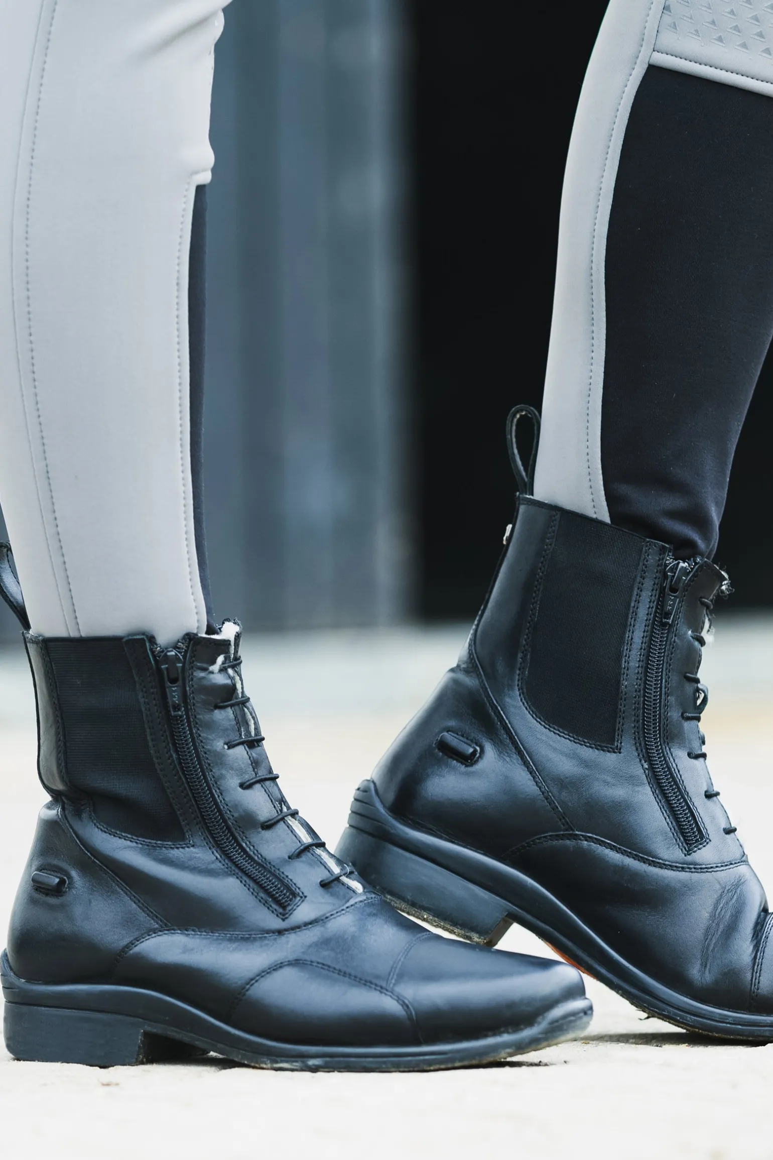 Die Horze Stockholm Reitstiefeletten sind die perfekten Reitschuhe, um sie mit Chaps zu kombinieren. Diese Reitstiefeletten verfügen über elastische Schnürsenkel sowie einen elastischen Einsatz an der Seite, für höchsten Tragekomfort. Das hochwertige Leder kombiniert mit einem doppelten Reißverschluss erleichtern das An- und Ausziehen. Diese mit 100 % Wolle vollgefütterten Reitstiefeletten halten deine Füße auf kalten Winterritten kuschelig warm.