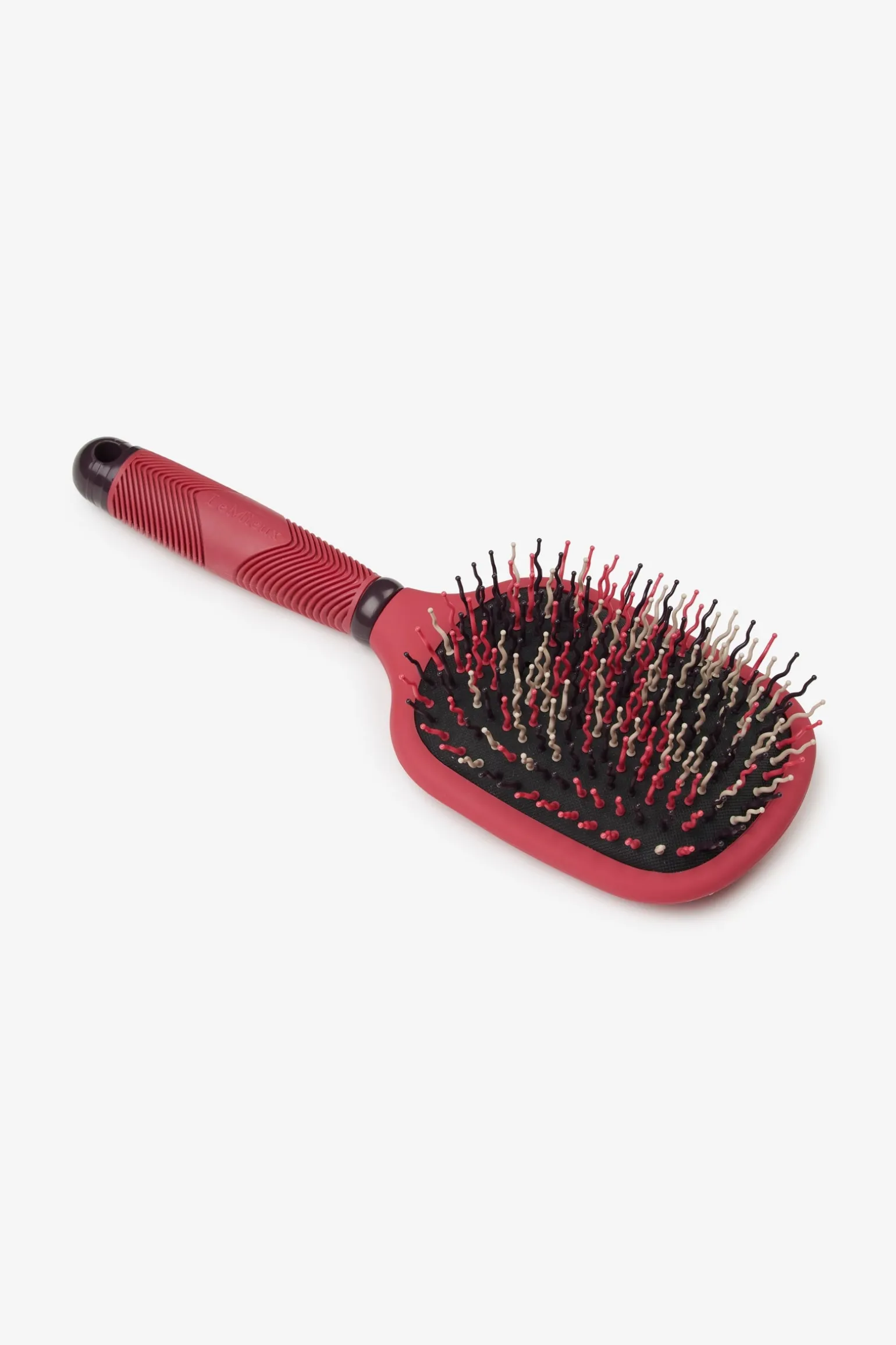 Sag den Knoten den Kampf an! Diese gepolsterte Bürste mit gewellten, farbigen Borsten entwirrt verfilztes Haar und meistert selbst die widerspenstigsten Mähnen und Schweife. Der ergonomische Griff sorgt für Komfort und sicheren Halt – selbst mit nassen Händen. Ideal für all deine verwöhnten Haustiere.