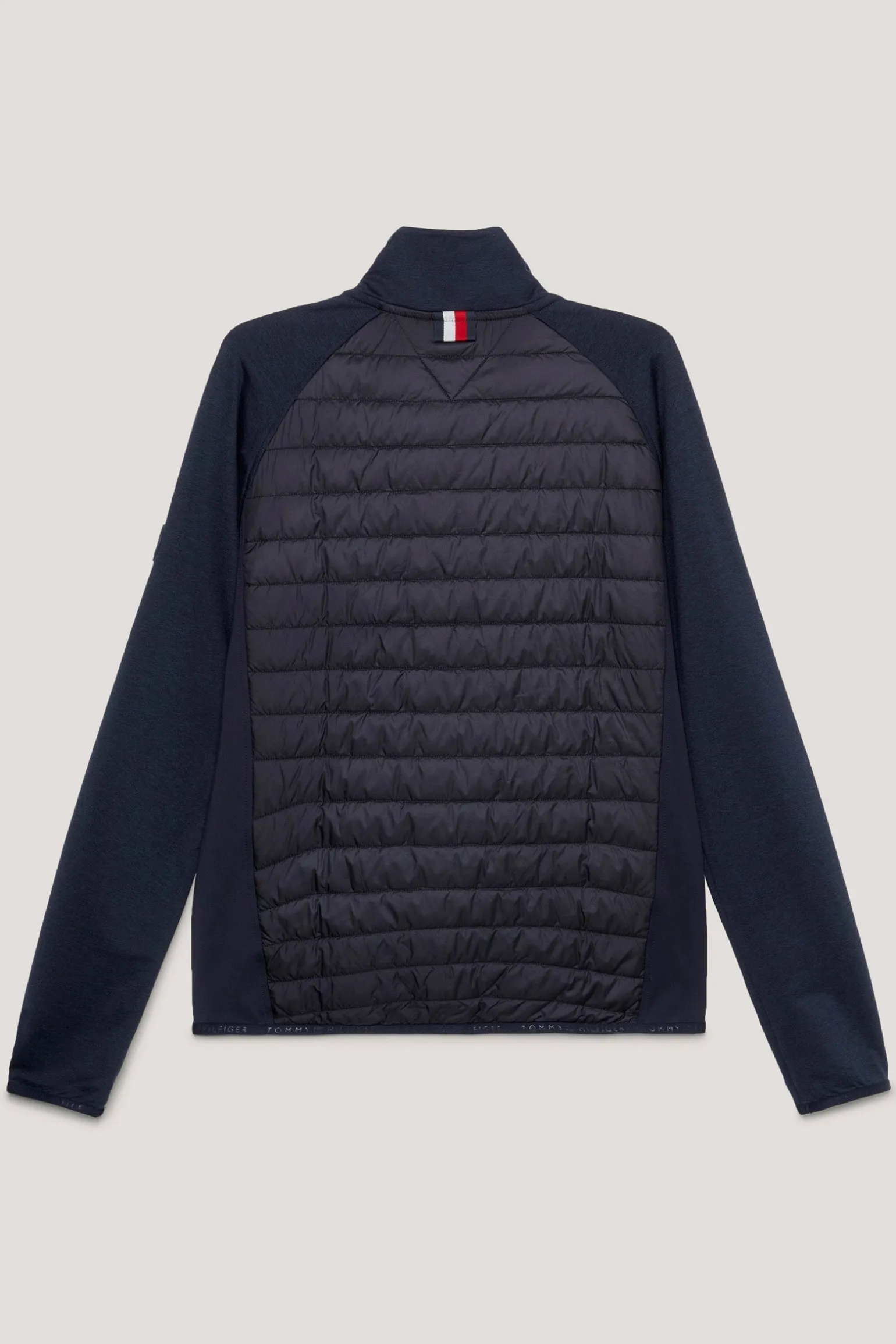 Perfekt, um dich warm zu halten und gleichzeitig maximale Flexibilität zu bieten, verfügt diese Hybridjacke über elastische Ärmel und Seiteneinsätze für mehr Bewegungsfreiheit. Mit reaktivem Wärmeausgleichsmaterial ausgestattet, das bei wärmeren Temperaturen Wärme abgibt und bei kühlerem Wetter Wärme speichert. Bi-Material-Konstruktion für Komfort und Leistung und reflektierender Tommy Hilfiger-Logoaufdruck auf der Brust. Die Innenpolsterung besteht zu 100 % aus recyceltem Material für den umweltbewussten Reitsportler.