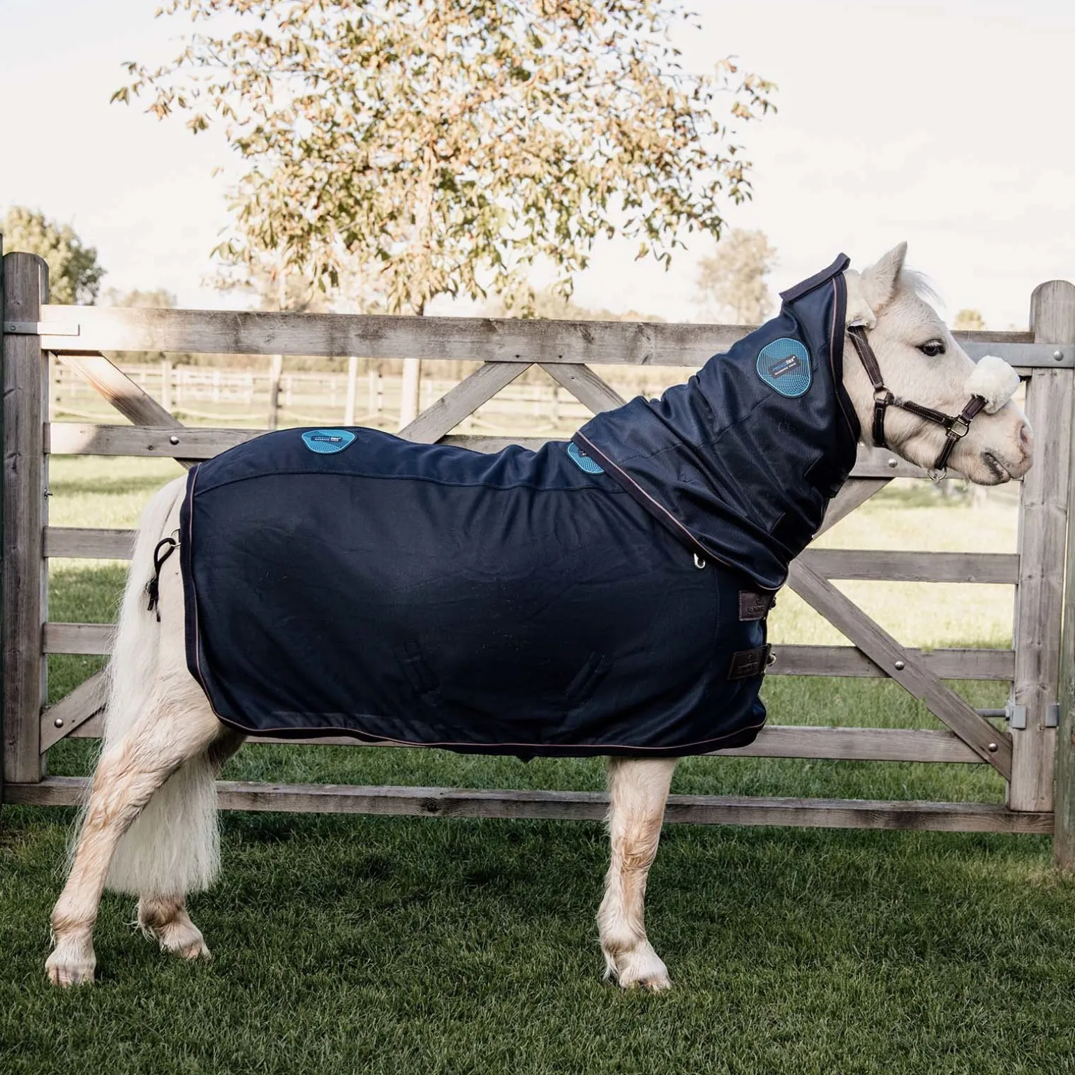 Eines der ersten Produkte im Kentucky Horsewear-Sortiment waren die Magnetic Stable Boots Recuptex. Da es sich um ein sehr erfolgreiches Produkt mit sehr hoher Kundenzufriedenheit handelt, haben wir uns dazu entschieden, auch eine Magnetic Rug Recuptex Deke zu entwickeln. Auch diese verwendet die gleiche RecuptexStofftechnologie, die sich als Stand der Technik erwiesen hat. Sie enthält feinstes, auf der Bekaert BEKINOX®-Technologie basierendes Inox-Garn (mit Fasern aus Edelstahl), das in den Stoff eingewebt wird. Dadurch entsteht ein Faraday-Käfig, der die im Körper des Pferdes erzeugten Magnetfelder reflektiert. Die Erhaltung dieser Felder fördert die Durchblutung und den Sauerstofffluss. Darüber hinaus beschleunigt es auch den Prozess der Erholung in einer geschützten, natürlichen Art und Weise. Die Decke besteht aus einem sehr starken Gewebe, das sowohl im Sommer als auch im Winter in Kombination mit anderen Decken verwendet werden kann. Es ist ideal, um die Muskeln des Pferdes vor und nach dem Reiten zu entspannen und kann auch über Nacht sehr gut auf dem Pferd gelassen werden. Wir empfehlen, die Decke zunächst eine Stunde zu verwenden und die Anzahl der Stunden an Nutzung beim Pferd in den folgenden Tagen schrittweise zu erhöhen, damit es sich an das Kribbeln gewöhnen kann, das entstehen kann. Maschinenwaschbar bei 30°, kein Trockner.