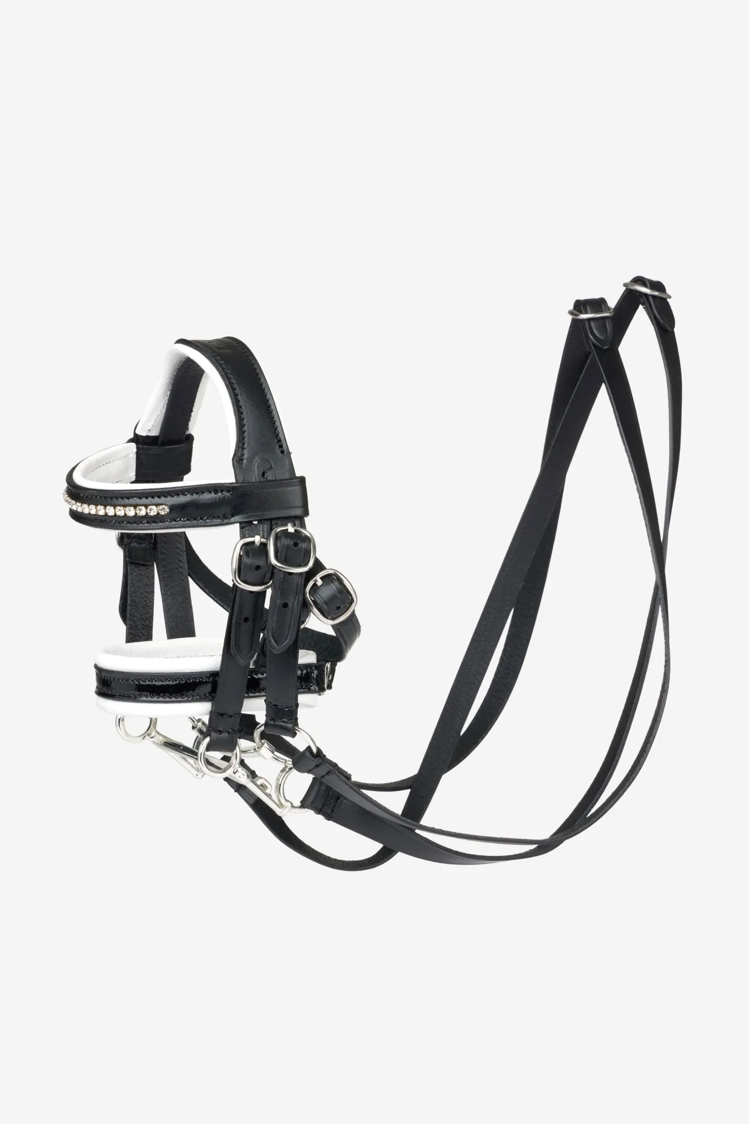 Dieses unglaublich detailgetreue Mini-Kandarenzaumzeug aus Leder ist ideal für kleine Dressurreiter*innen, um das Aufzäumen ihres LeMieux Toy Pony zu üben. Es wurde von denselben Lederprofis gefertigt wie die echten Performance-Trensen. Mit funktionierenden Schnallen kannst du die Kandare individuell anpassen. Natürlich gehört ein glitzerndes Stirnband dazu und ein schwarzer Lacknasenriemen mit weichem weißen Lederpolster. Alle echten Details sind enthalten – sogar die zwei Gebisse: eine Kandare, eine Unterlegtrense und zwei Zügel.