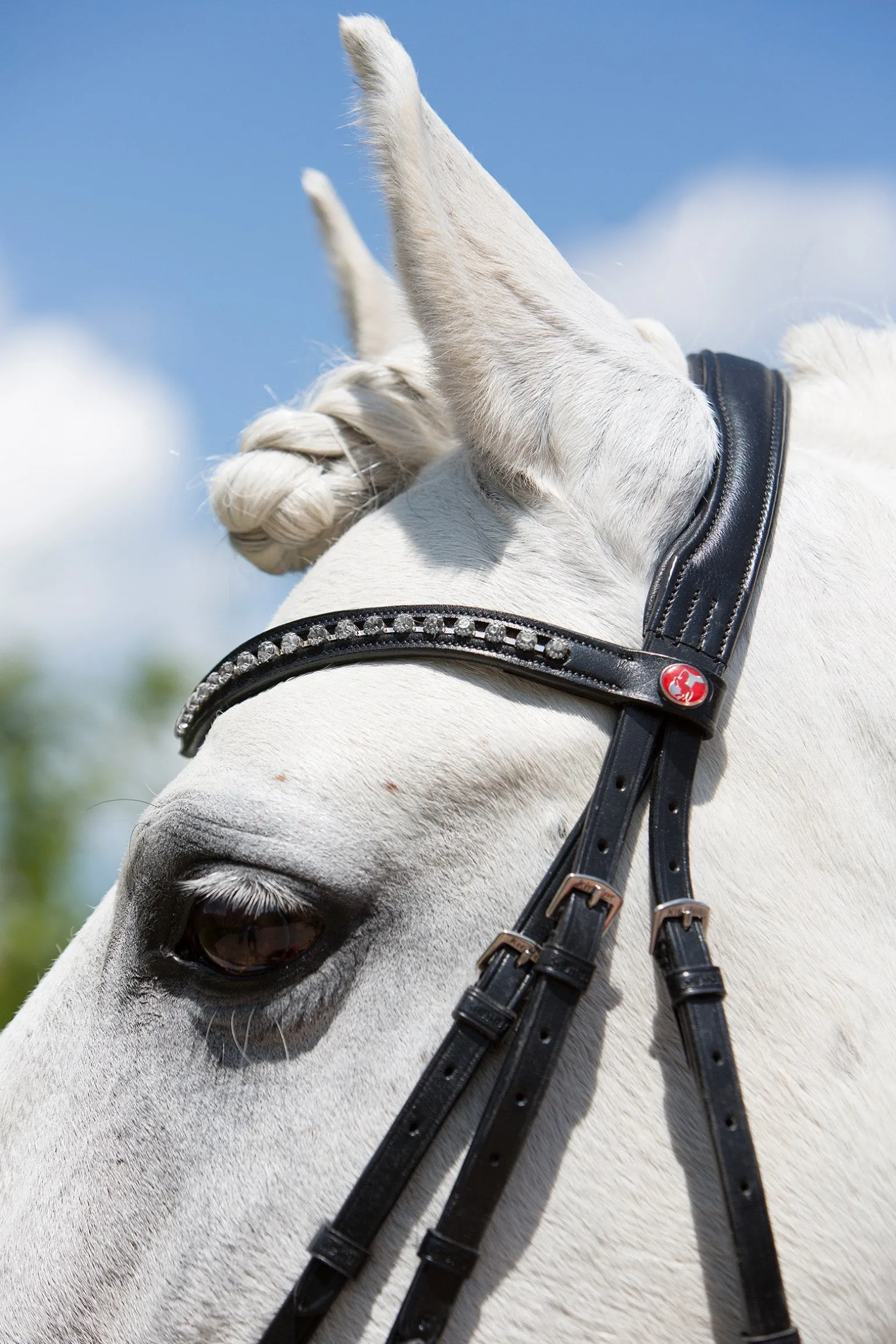 en-gblisch kombinierte Trense mit geschwungenem Kristall-Stirnband in ultrasofter Qualität.