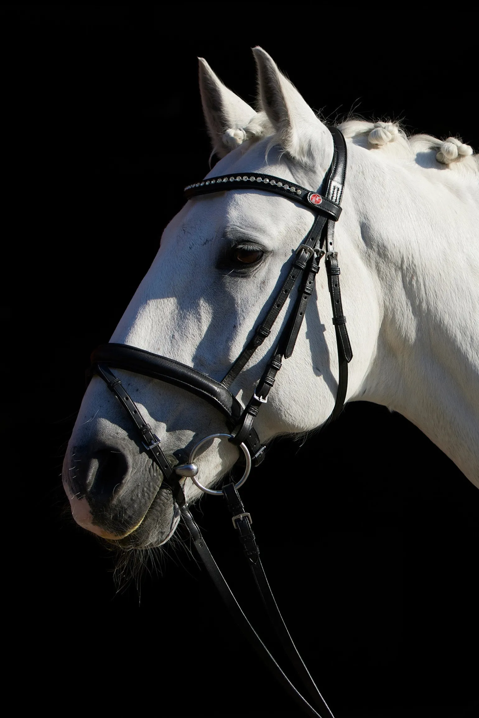 Trensenzaum Kieffer Ultrasoft® FlexiStyle ist ein klassischer, englisch kombinierter Trensenzaum aus butterweichem Qualitätsleder. Das beidseitig verschnallbare Professional-Kopfstück mit Ohrenausschnitt und das Nasenband sind bei diesem Zaum extraweich gepolstert. Die Besonderheit von Kieffer Ultrasoft® FlexiStyle: Dieser Zaum ist mit einem geschwungenen Kieffer FlexiLoop® Stirnband mit weißen Kristallen ausgestattet. Der clevere Schnellwechselverschluss mit seitlich angebrachten Druckknöpfen erleichtert den Wechsel des Stirnbands enorm und macht die Kreation eines neuen Looks in weniger als einer Minute möglich! Die aktuelle Kieffer FlexiLoop® Stirnband-Kollektion ist in verschiedenen Farbtönen und Kristallgrößen erhältlich.