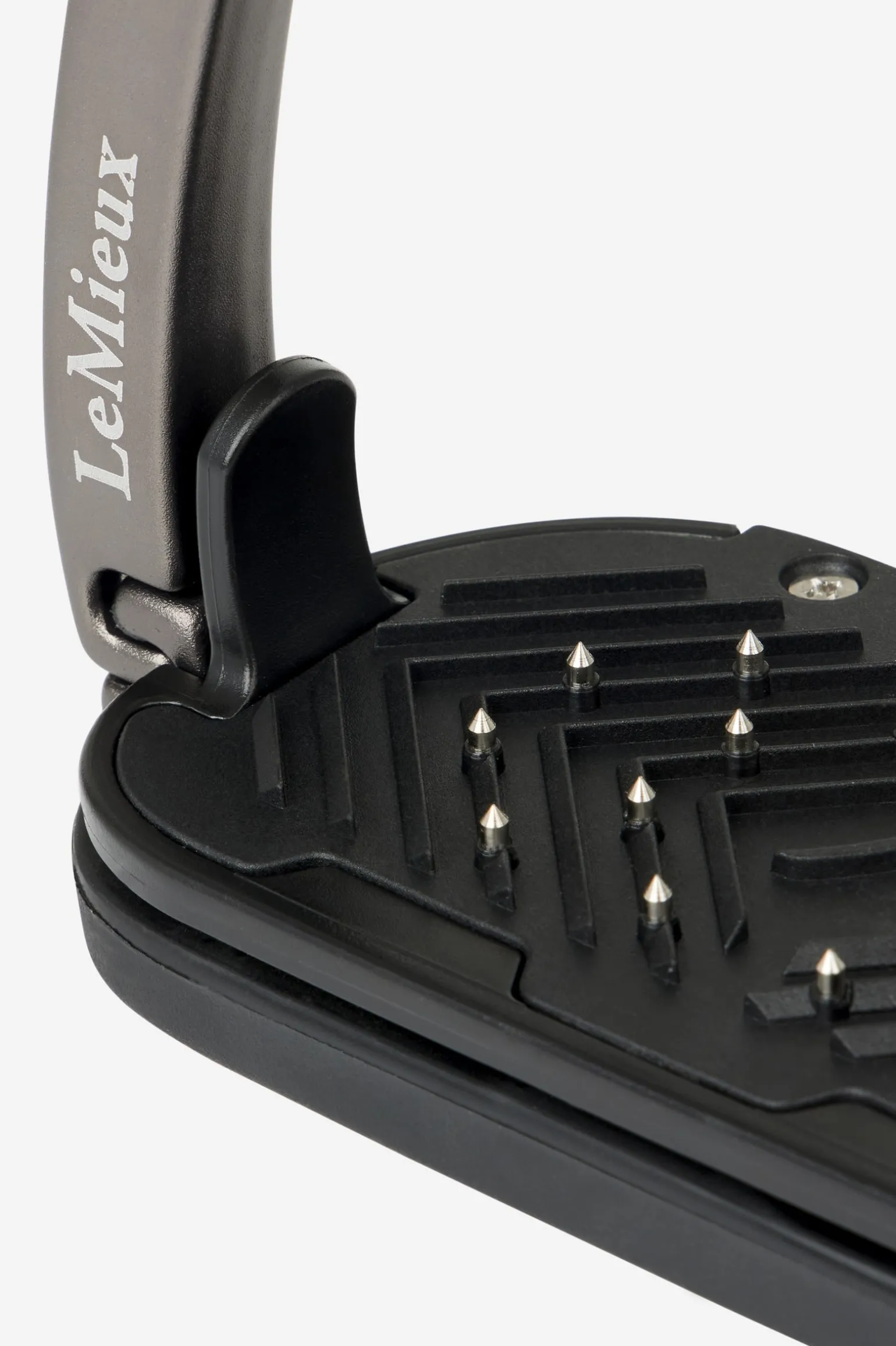 Die ergonomische Trittfläche des Control Steigbügels ist auf 0º eingestellt und hat eine quer verlaufende Grifffläche mit eingelassenen gehärteten Stahlstiften, die für guten Halt des Stiefels sorgen.