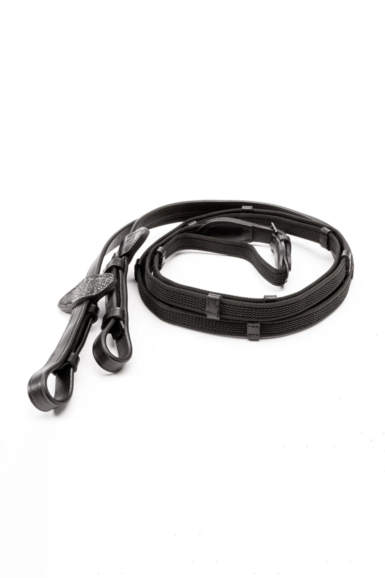 Die Trense wird mit gummierten Zügeln und Stegen (16 mm) geliefert.
