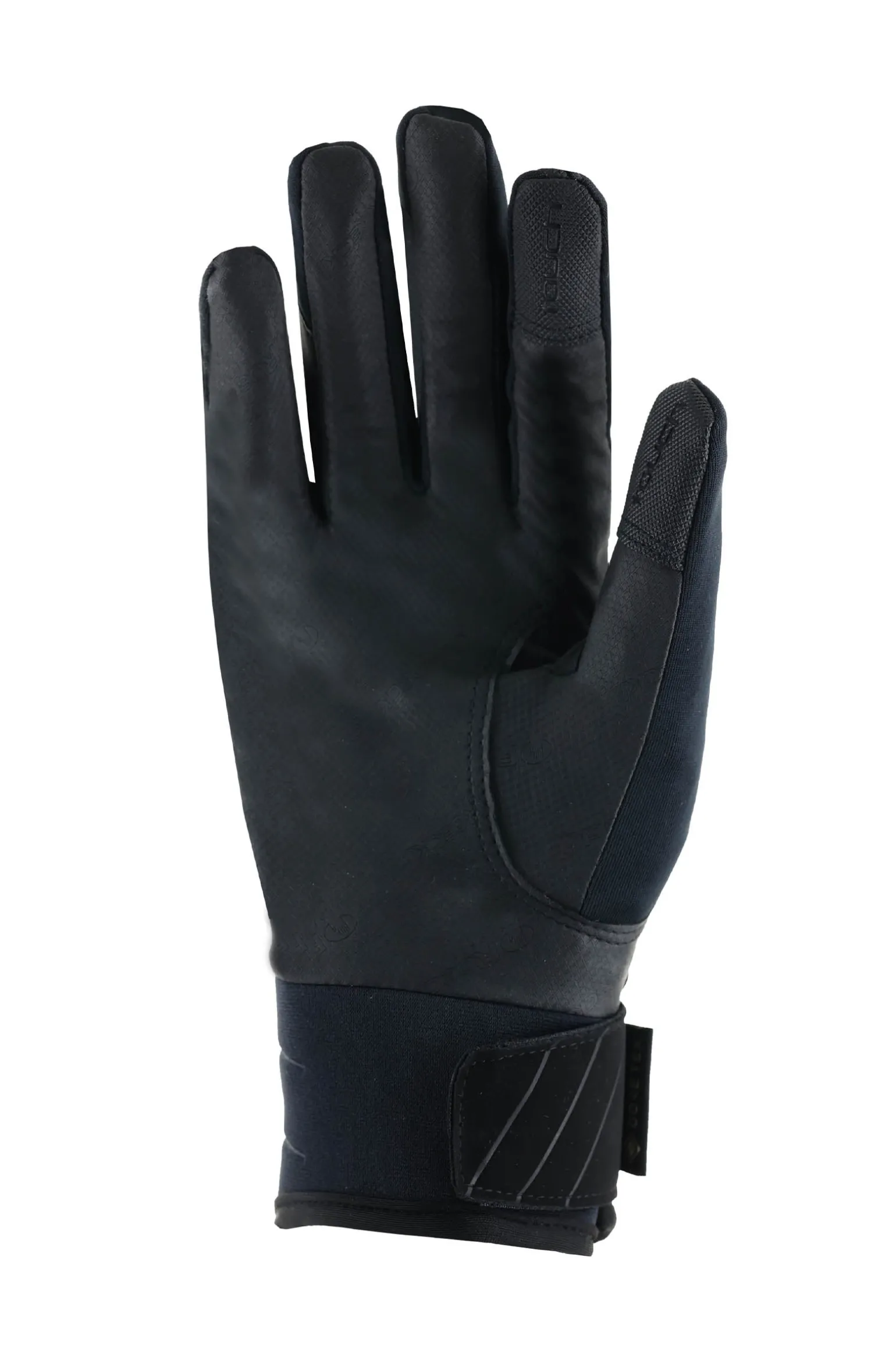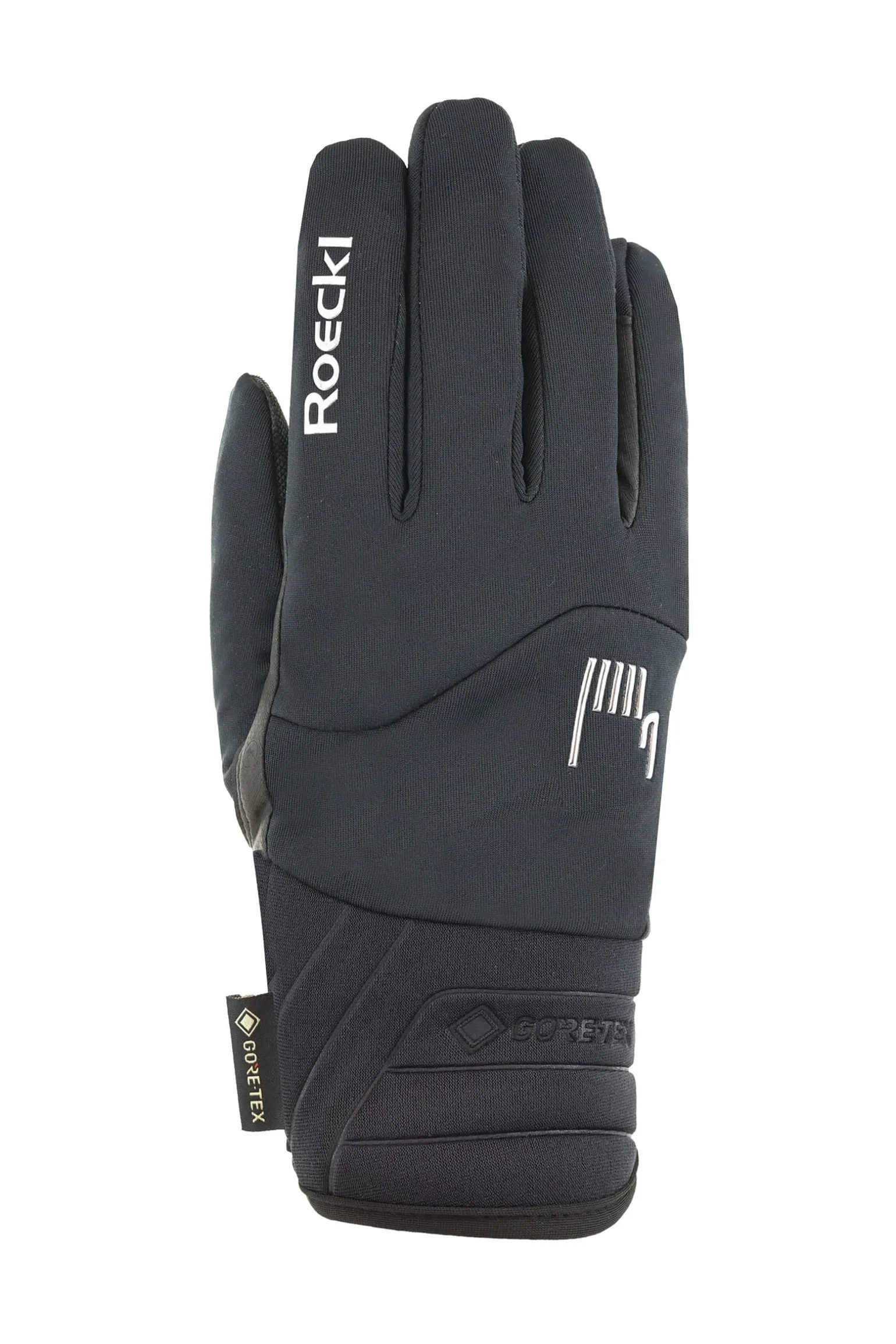 Reliable, waterproof, nice and warm, and extremely comfortable: The WOLDA GTX winter riding glove seems to read the minds of riders and horse lovers in and out of the saddle alike. The cold and wet don’t stand a chance against the ROECK-PROOF® ECO Denali made from 87% recycled polyester on the backhand. But there’s more: This triple-layer laminate is highly breathable and elastic, creating optimum wear comfort and allowing totally unimpeded finger and hand movement. And because it is napped on the inside, the material feels soft and warm as fleece. A PFAS-zero, breathable GORE-TEX membrane made from expanded polyethylene (ePE) provides additional protection against wind and weather – it is lightweight, thin, and bluesign®-approved as well as certified in accordance with STANDARD 100 by OEKO-TEX®. The high thermal performance of the WOLDA GTX is perfected by the lavalan® pro insulation, a durable, efficiently thermoregulating fiberfill made from virgin wool and corn fiber which is also animal-friendly (no mulesing) – just scan the QR code on the label to track its ethically sound origin. It also neutralizes odors and provides a good grip. Speaking of grip: The soft but robust microperforated MICRO-AIR not only feels airy, lightweight, and comfortable but also guarantees a non-slip grip on the reins on the palm, thus ensuring high tactility. What else? Recycled Eco lining and a long neoprene cuff with a hook and loop fastener to make minor adjustments to the snug fit that will simply disappear into the sleeve of a jacket. Taking photos, sending messages, and taking calls is possible with the gloves on thanks to the TOUCHSCREEN COMPATIBLE functionality. The WOLDA GTX comes in classic black, with the 3D metallic Roeckl Sports logo providing a stylish highlight. Does not contain leather.