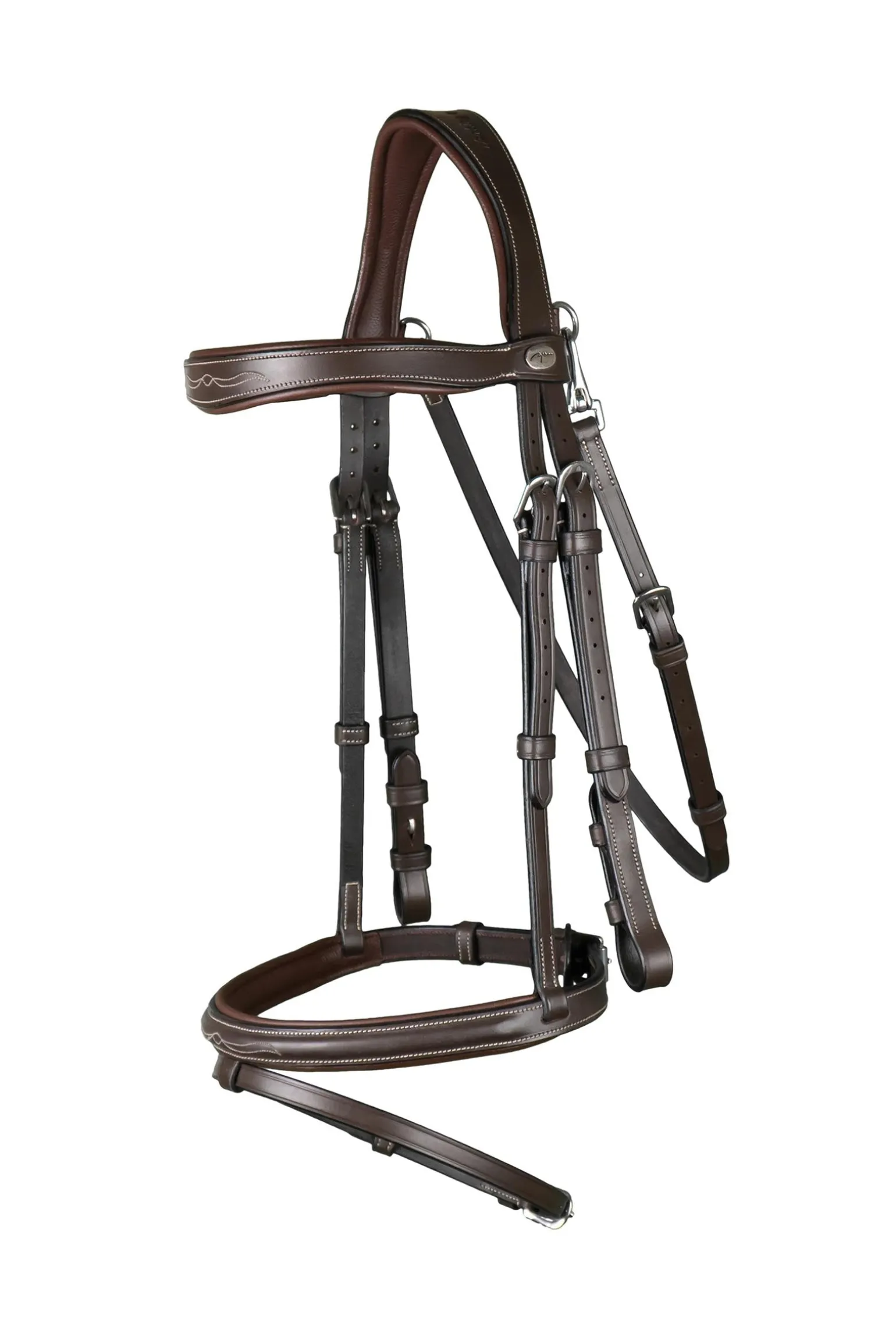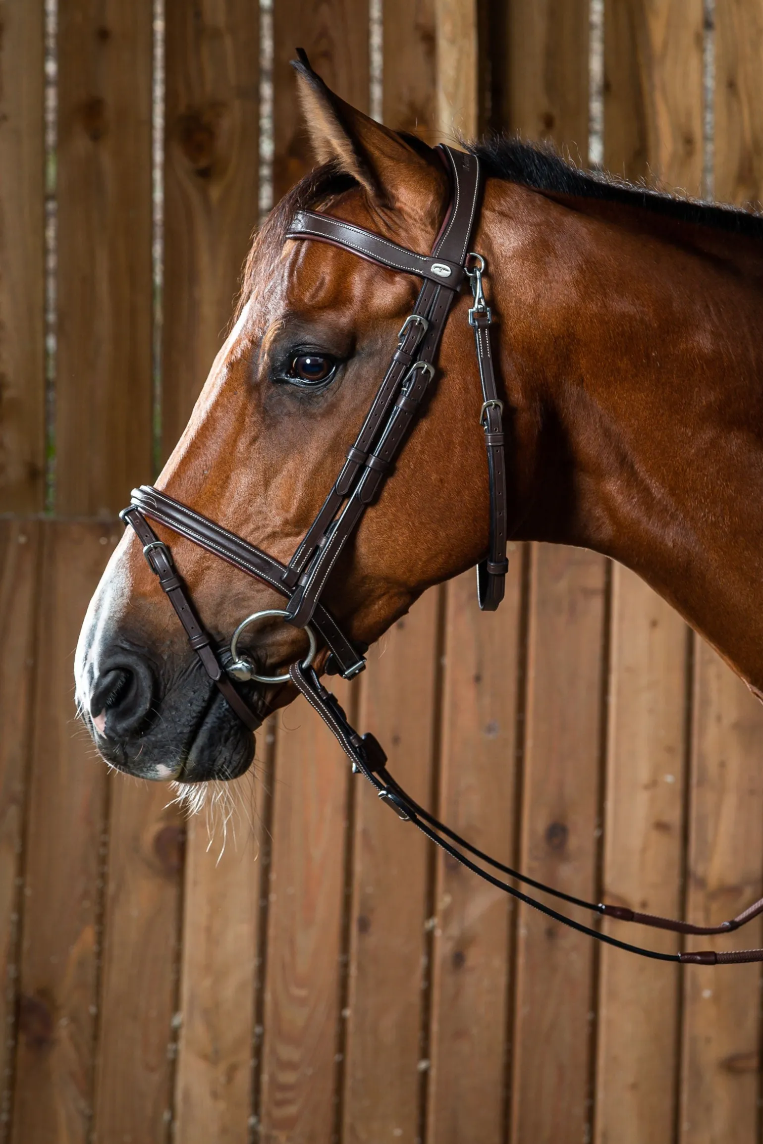 Diese kombinierte Trense ist ein Ausrüstungsstück, das genauso viel leistet wie du. Hergestellt aus robustem und dennoch geschmeidigem Büffelleder, ist sie für den regelmäßigen Trainingseinsatz konzipiert – und sieht dabei immer gepflegt aus. Besonders praktisch ist der Karabinerhaken am Kehlriemen, mit dem du schnell aufzäumen oder absatteln kannst – kein Gefummel mit Schnallen, selbst wenn du es eilig hast oder Handschuhe trägst. Der Sperrriemen hilft, das Gebiss in stabiler Position zu halten – ideal für junge Pferde, sensible Typen oder kräftige Pferde, die etwas mehr Führung brauchen. Als Teil der Dy’on Working Kollektion steht diese Trense für das, was die Serie ausmacht: Langlebigkeit, Funktionalität und Komfort. Kombiniere sie mit passenden Zügeln oder einem Vorderzeug für ein vollständiges Setup.