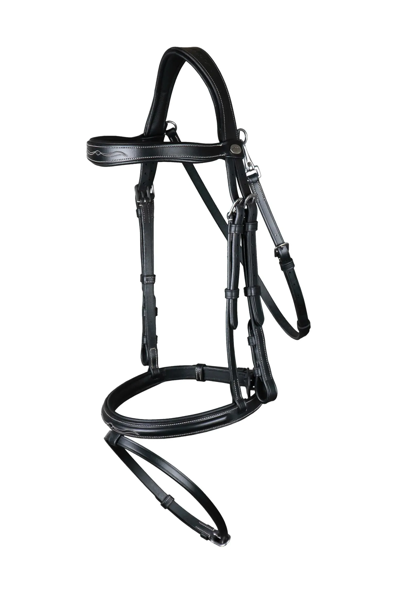 Diese kombinierte Trense ist ein Ausrüstungsstück, das genauso viel leistet wie du. Hergestellt aus robustem und dennoch geschmeidigem Büffelleder, ist sie für den regelmäßigen Trainingseinsatz konzipiert – und sieht dabei immer gepflegt aus. Besonders praktisch ist der Karabinerhaken am Kehlriemen, mit dem du schnell aufzäumen oder absatteln kannst – kein Gefummel mit Schnallen, selbst wenn du es eilig hast oder Handschuhe trägst. Der Sperrriemen hilft, das Gebiss in stabiler Position zu halten – ideal für junge Pferde, sensible Typen oder kräftige Pferde, die etwas mehr Führung brauchen. Als Teil der Dy’on Working Kollektion steht diese Trense für das, was die Serie ausmacht: Langlebigkeit, Funktionalität und Komfort. Kombiniere sie mit passenden Zügeln oder einem Vorderzeug für ein vollständiges Setup.