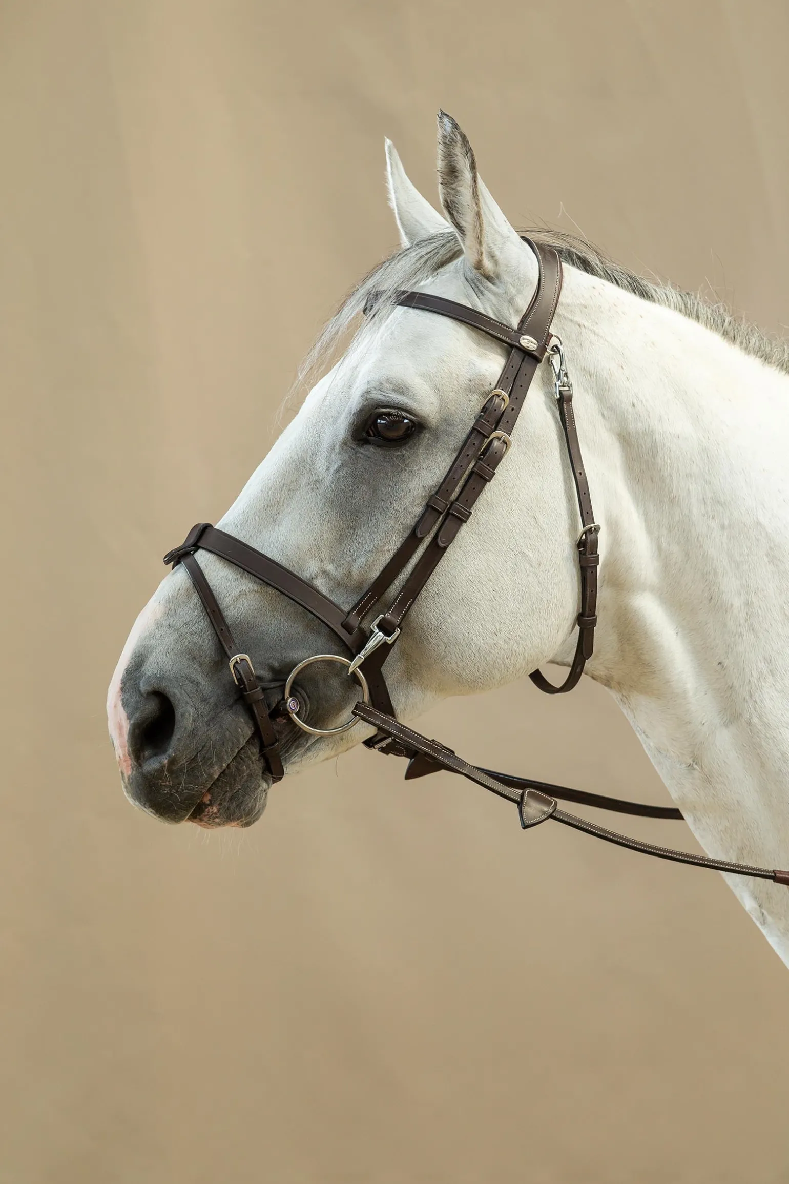 Für Reiter*innen, die Effizienz und Vielseitigkeit verlangen: Diese flache Ledertrense aus robustem Büffelleder bietet ein strapazierfähiges, geschmeidiges Tragegefühl und ist ideal für die tägliche Arbeit. Das flache Leder liegt glatt am Pferdekopf an und vermeidet unnötigen Druck. Dank der Karabinerhaken an Backenstücken und Kehlriemen kannst du das Gebiss schnell wechseln oder die Trense abnehmen – perfekt, wenn du mit mehreren Pferden arbeitest oder im Laufe des Tages die Disziplin wechselst.