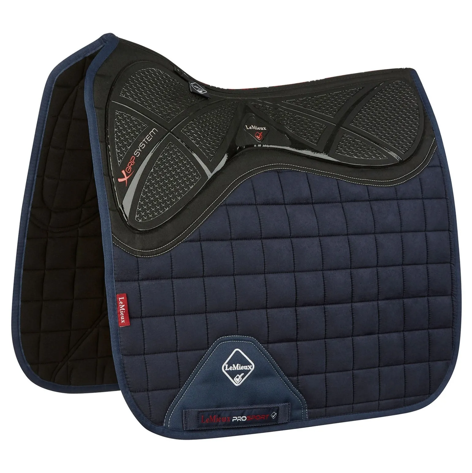 Das X-Grip Square Dressurschabracke kombiniert den stilvollen, ikonischen LeMieux-Schnitt mit dem neuen X-Grip-Silikon-Design, um Sattelstabilität und Halt zu gewährleisten. Das Memory-Schaum unter dem Sattelbereich sorgt für Komfort und Stoßdämpfung. Der speziell belüftete Schaumkern wurde einem besonderen Verfahren unterzogen: Heiße Luft wird unter Druck durch das Memory-Schaum-Material gepresst, wodurch das extrem atmungsaktive, aber dennoch stützende und leichte perforierte Material entsteht. Es ist so gestaltet, dass es auf eine Vielzahl von Dressursätteln passt und verfügt über einen ausgeschnittenen, hohen Widerristbereich. Der charakteristische Sattelgurtbereich bietet mehrere Gurtungsoptionen. Die luxuriöse künstliche Wildleder-Oberseite wird durch ein superweiches Bambusfutter ergänzt, das Schweiß unter dem Sattel aufnimmt und reguliert. Angenehm komfortabel und sicher – minimiert Reibung.